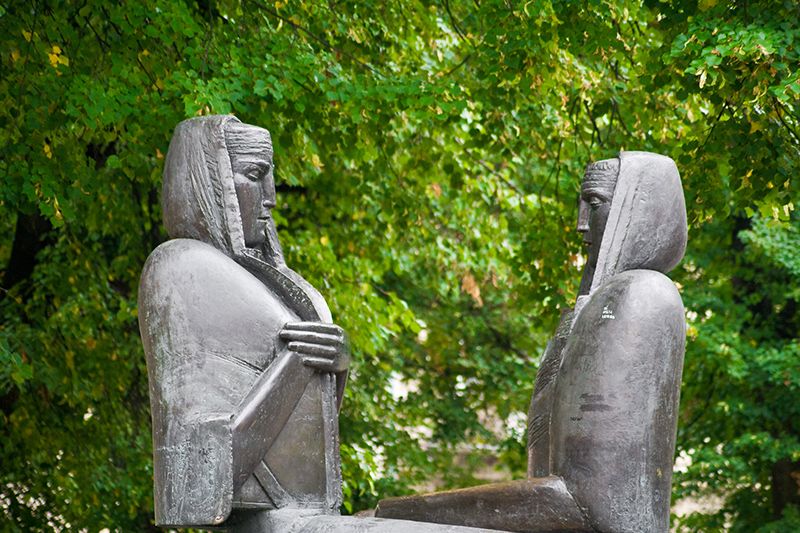Данная скульптура посвящена сестрам писательницам Софии Иванаускайте-Пшибиляускене (1867-1926) и Марии Иванаускайте-Ластаускене (1872-1957), которые подписывались одним и тем же псевдонимом Лаздину Пеледа («Сова из орешника»).