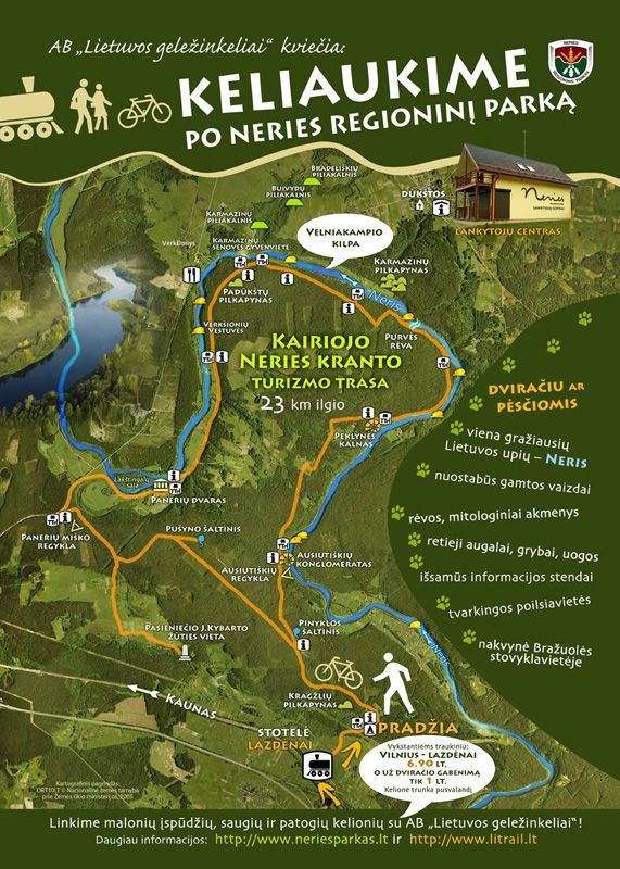 Региональный парк реки Нерис – это прежде всего живописные окрестности второй по величине реки Литвы, маленькие деревеньки и большая история древней Литвы. Парк учрежден в наиболее интересном промежутке течения реки для охраны ландшафта долины Нерис, растительного и животного мира, уникальной системы речных петель и притоков, а также для охраны культурного наследия.