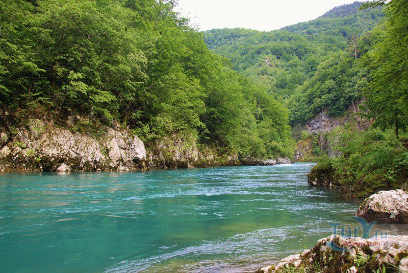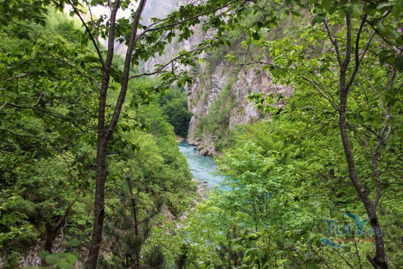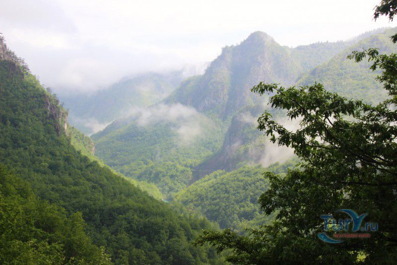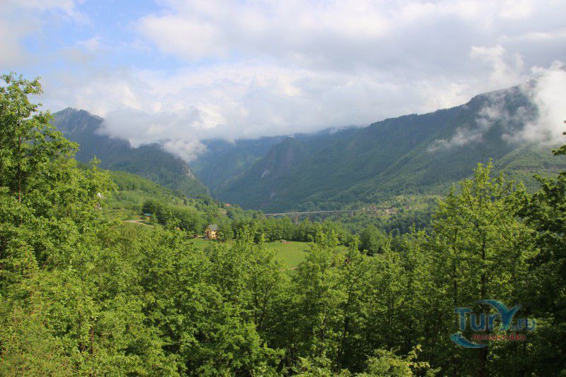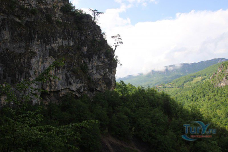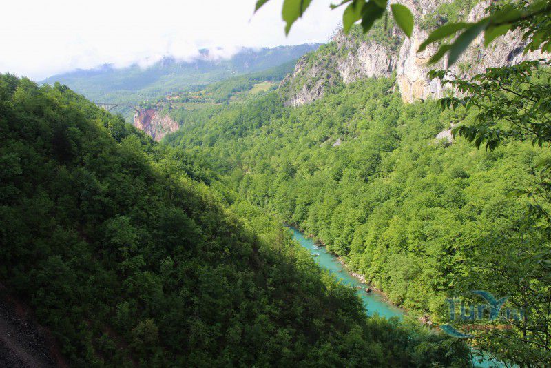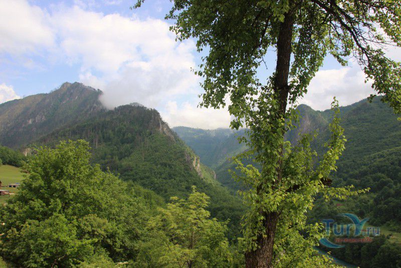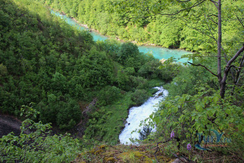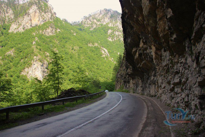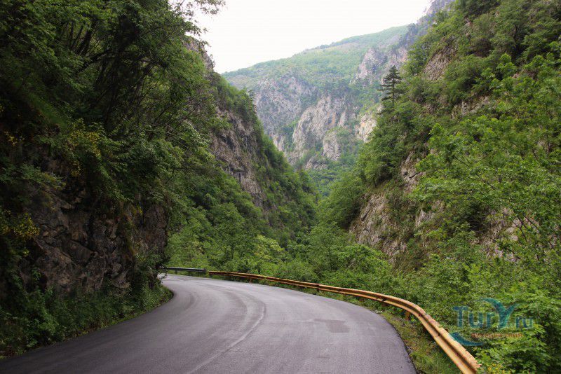 Немного о дороге. Это интересно. Временами отвесные скалы сдвигаются так, что неба не видно, а бурлящая Тара, то появляется непосредственно рядом с дорогой, а то ныряет в густую растительность и шумит где-то далеко внизу. Само шоссе узкое, с немного потрёпанным покрытием, местами на нём видны следы свежего ремонта, что немного портит впечатление, но в целом оно с лихвой компенсируется потрясающими красотами окружающей местности. В небольших карманах можно сделать короткие остановки - просто нет сил проезжать мимо! Хочется постоять, полюбоваться ещё и ещё одним захватывающим видом, не спеша сделать пару кадров на память!