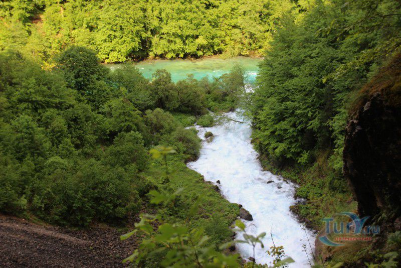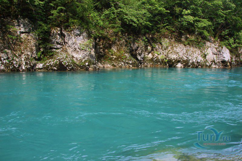 Вода реки необыкновенно яркого бирюзового оттенка и настолько холодная, что даже в самые жаркие летние дни её температура едва достигает +12°C.