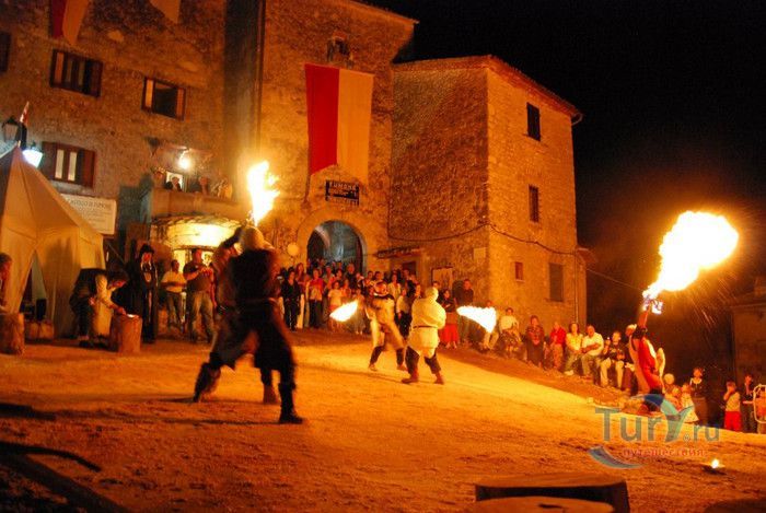 Средневековый замок Фумоне был построен в X веке на вершине 800-метрового холма, в центре крепости Фумоне. В Средние века замок выполнял роль аванпоста, располагаясь на границе между Папскими владениями и Королевством двух Сицилий. Через замок проходила главная дорога, соединяющая Рим и Неаполь. Стражники замка должны были следить за дорогой и, в случае обнаружения армии неприятеля, дымовыми сигналами предупредить Рим об опасности. За тысячелетнюю историю замок "оброс" тайнами, легендами и мифами о коварных убийствах и жестоких пытках, происходивших в его стенах. Замок использовался в качестве "папской тюрьмы" и каземата для политических заключённых. В 1116 году в замке был заточён префект Рима Пьетро Корси, в 1121 году замок Фумоне стал местом заключения и смерти анти-папы Маурицио Бордино, а в 1295 году узником стал святой Целестин V, который умер в замке через десять месяцев сурового содержания. У замка есть и страшная семейная тайна. Пятилетний сын владельца замка Франческо Лонги был отравлен старшими сёстрами из-за наследства. Тело мальчика забальзамировали и поместили в стеклянной витрине, в которую положили также его игрушки, книжки и скрипку. Более двухсот лет тело покоится в Архиве замка Фумоне. Легенда гласит, что ночью в замке можно услышать рыдания матери, лишившейся от горя разума. Во дворе замка находится Колодец девственниц, в который, по приказу владельца замка, сбрасывали несговорчивых невест, отказавших феодалу в его праве сеньора на первую брачную ночь. В XVI веке замок теряет своё военное значение, а в 1584 году владельцем замка становится маркиз Лонги. Хозяином замка было обустроено Святилище Целестина V, которое состоит из небольшой часовни и тюремной камеры, в которой умер папа Целестин V. В восточном крыле замка находится Зал эмблем, в котором хранятся древние гербы, в Зале цезарей помещены мраморные статуи императоров Августа, Вителлия, Марка Аврелия. Портреты членов семьи Лонги де Паолис размещены в Зале предков. В XVII веке в замке, на высоте 800 метров над уровнем моря, был обустроен висячий сад - самый высокий насыпной сад в Европе. На площади 3500 квадратных метров растут вековые деревья, созданы террасы среди древних башен и рвов. С 1990 года владельцы замка маркизы Фабио и Стефано Лонги открыли его для посещения публики.