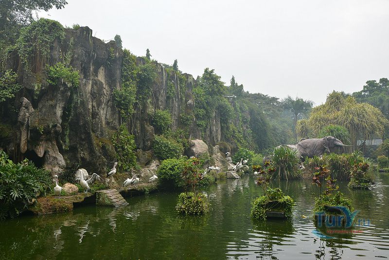 Рагунан - огромный старый зоопарк в 20 километрах от города - любимое место отдыха индонезийцев и туристов, с аттракционами, детскими площадками и возможностью посмотреть на зверей в их естественной среде обитания. Современный зоопарк располагается на территории в 147 гектаров, здесь содержится порядка двух тысяч разновидностей животных, многие из которых занесены в Красную книгу. Парк, разбитый на несколько отдельных территорий, насчитывает более пятидесяти тысяч деревьев, создающих комфортную прохладу для посетителей. В просторных вольерах обитают слоны и жирафы, верблюды и зебры, тигры и гиппопотамы. История зоопарка Рагунан началась еще в 1864 году, когда здесь основали питомник, в который свозили найденных в джунглях раненых и ослабевших животных и брошенных детенышей. Количество питомцев росло, это место постепенно превратилось в самый настоящий зоопарк. Основную часть коллекции здесь представляют животные фауны Индонезии. На отдельном острове с вышками для наблюдения живут взрослые обезьяны. Остров огорожен рвом с заболоченной водой. В разных частях парка расположены три экспозиции комодских варанов, начиная от совсем молодых до трехметровых особей. Само название - "комодо" - передает восторженно-почтительное отношение индонезийцев к своему национальному символу. Орангутанги содержатся в нескольких вольерах. По специальным прозрачным коридорам можно пройти в пещеры с лесными обитателями и понаблюдать за ними в естественной среде обитания. Особое внимание посетителей привлекает вольер-интернат с группой глазастых толстопузых малышей со смешными хохолками на головах.