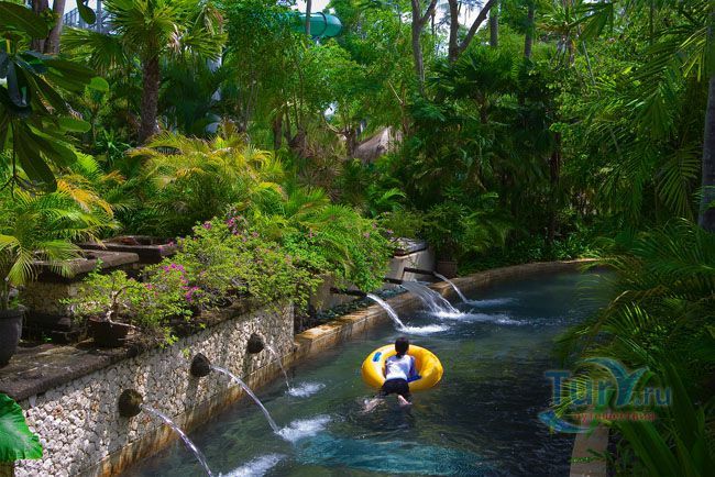 Расположенный среди 3,5 гектаров тропических садов, этот парк является чудесным местом отдыха для всей семьи. Можно выбрать одно из развлечений, в том числе, спуск на водных горках со скоростью, достигающей 50 км/час, прогулку по тихой реке или спуск среди тропической растительности в джунгли Раи и многое другое. В специальном детском парке дети могут плавать в мелководном водоеме. На Ваш выбор предоставляется два чудесных ресторана и плавучий бар, чтобы Вы могли насладиться прохладительными напитками. Вы можете принять минеральные ванны, где опытные массажисты, используя ряд трав и масел, помогут Вам расслабиться.