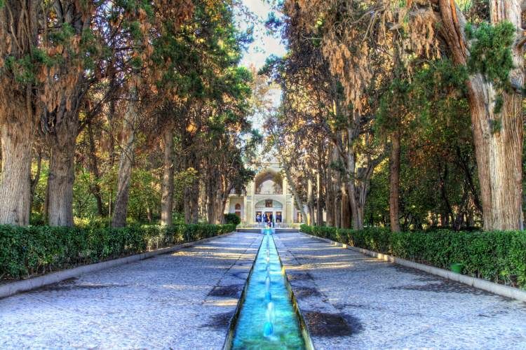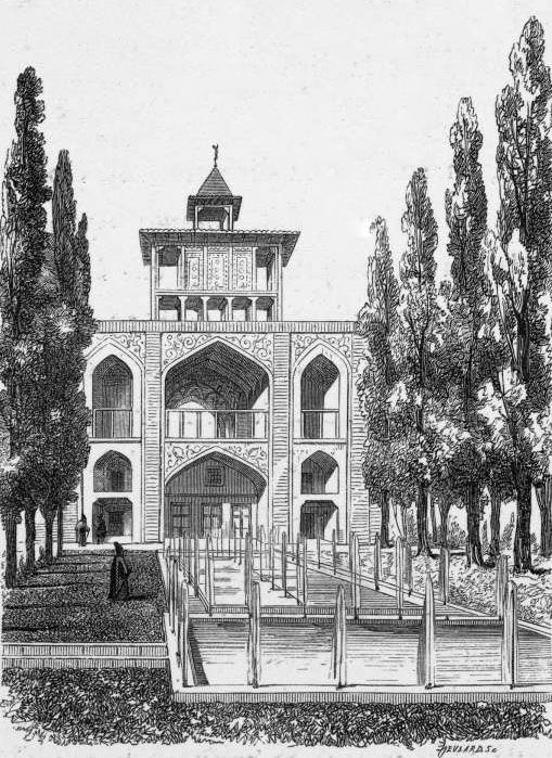 В центре сада расположен дворец Сефевидов. Малое здание бани и другие постройки, принадлежащие также времени правления династии Сефевидов, расположены по тому же принципу. А дворец Каджаров с красивыми картинами на потолке и стенах расположен уже за пределами оси симметрии.