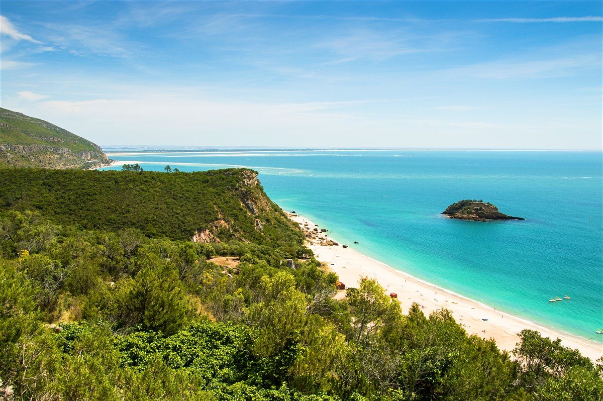 Природный парк Аррабида, простирающийся от Сетубала до рыбацкого поселка Сезимбра, впечатляет своими живописными видами, редким сочетанием красок пейзажа, в котором преобладают лазурь океана, беловатые тона известняковых утесов и яркий изумруд густого растительного покрова горных склонов.