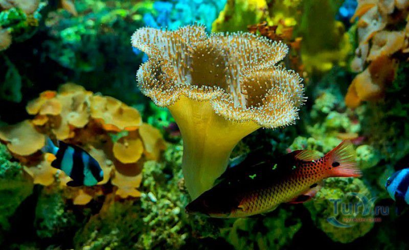 Зал Кораллов даёт возможность посетителям познакомиться с обитателями коралловых рифов, здесь представлены более 200 видов кораллов и 5000 видов представителей морской флоры и фауны - коралловые рыбы, моллюски, актинии, губки, мурены, медузы, акулы. Большой популярностью у детей и взрослых пользуются Морская лаборатория, Подводный калейдоскоп, а также погружения аквалангистов и водный балет "русалок". Молодожёны могут устроить здесь подводную свадьбу, "пригласив" в свидетели рыбу-клоуна или рифовую акулу.
