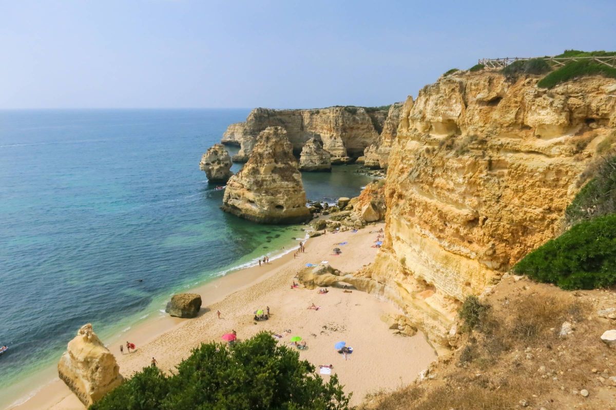 Окруженный высокими скалами, скульптурно обработанными эрозией, прекраснейший пляж «Прайя-да-Маринья» считается одним из 100 лучших пляжей планеты. Этот уголок дикой природы, которой почти не коснулась рука человека.