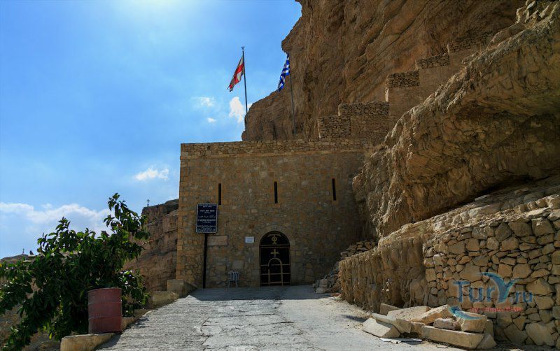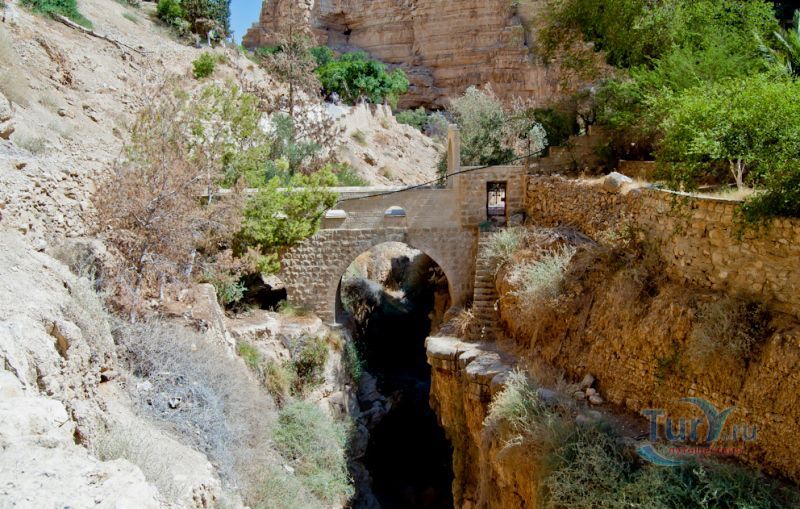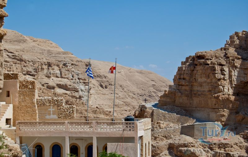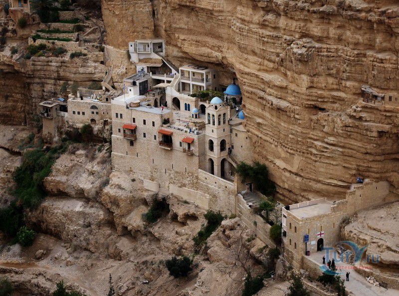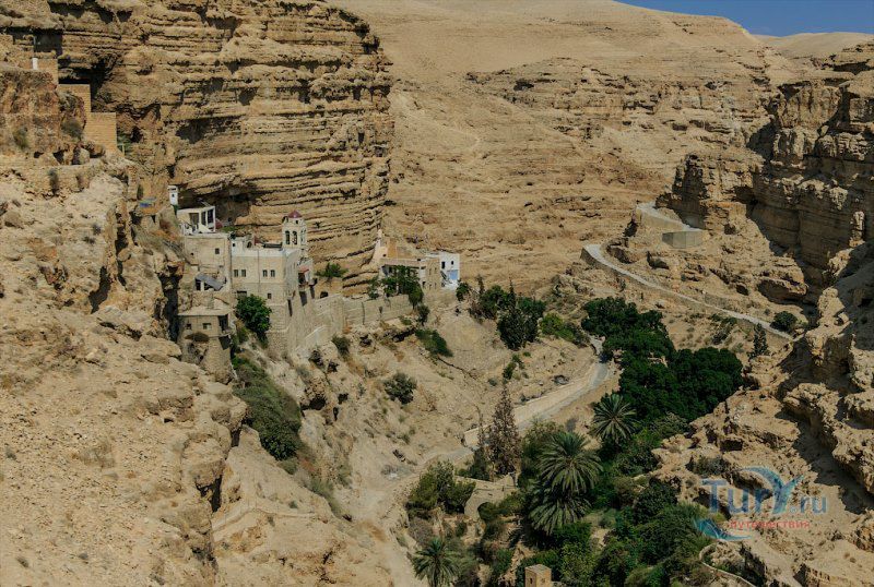 Монастырь Сент-Джордж, также его называют Монастырь Святого Георгия Хозевита, расположен на узком уступе, выступающем в отвесной скале ущелья Вади Кельт (Кельтский каньон). Рядом, в скалах, есть очень много пещер-келий отшельников, которые теперь заброшены. Монастырь функционирует и открыт для посетителей. Он был основан в 80-е года 5 века. Этот красивый и необычный монастырь находится в 5 км от палестинского города Иерихон. На расстоянии он смотрится очень интересно, похож на игрушечный домик, который прикрепили прямо к стене ущелья. В монастыре находится могила Святого Георгия, который много лет был отшельником и жил здесь, став впоследствии духовным наставником общины монахов. За долгие годы существования, обитель подвергалась разрушениям со стороны воинственно настроенных народов. Позднее её старались возродить, но безуспешно. В 1901 году, при помощи греко-ортодоксальной Патриархии Иерусалима, монастырь Сент-Джордж был полностью отстроен, отреставрированы церкви и кельи монахов. В 1952 году к этому комплексу, при содействии Иерусалимского Патриарха Тимофея І, была пристроена колокольня. Монастырь имеет трехуровневую схему строения. На нижнем уровне расположены захоронения и подсобные помещения-склады. На среднем уровне - все главные строения и вход в монастырь, а также церкви Святых Иоанна и Георгия Хозевита, церковь Святой Девы Марии. На верхнем уровне находится церковь-пещера Илии. Монастырь открыт для паломников и посетителей.