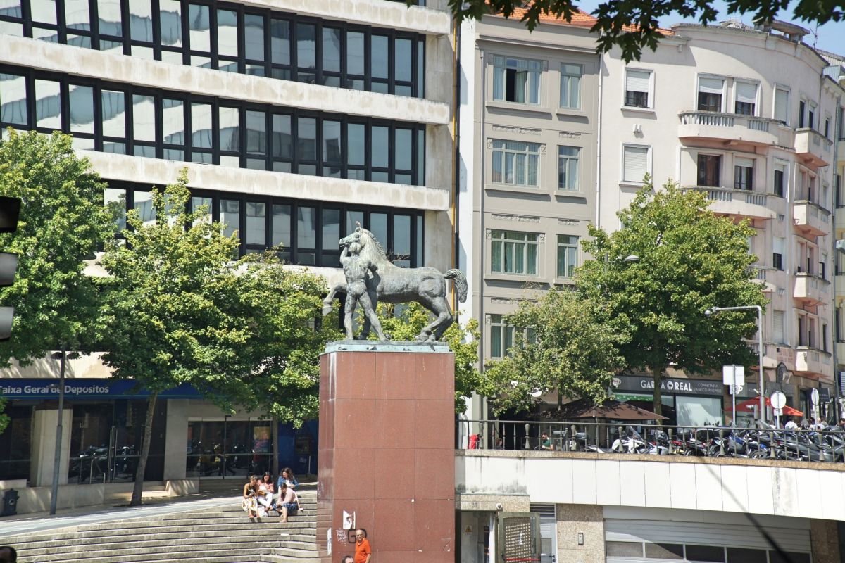 Созданная в XX веке в рамках градостроительных преобразований, площадь отличается геометрической строгостью и современным обликом. Она вымощена гранитом и украшена фонтанами, скульптурными группами и зонами отдыха, включая две монументальные бронзовые статуи: «Львы» (Os Leões), выполненные скульптором Жуаном Салгаду. Эти произведения искусства придают пространству динамичность и служат популярным местом встречи.