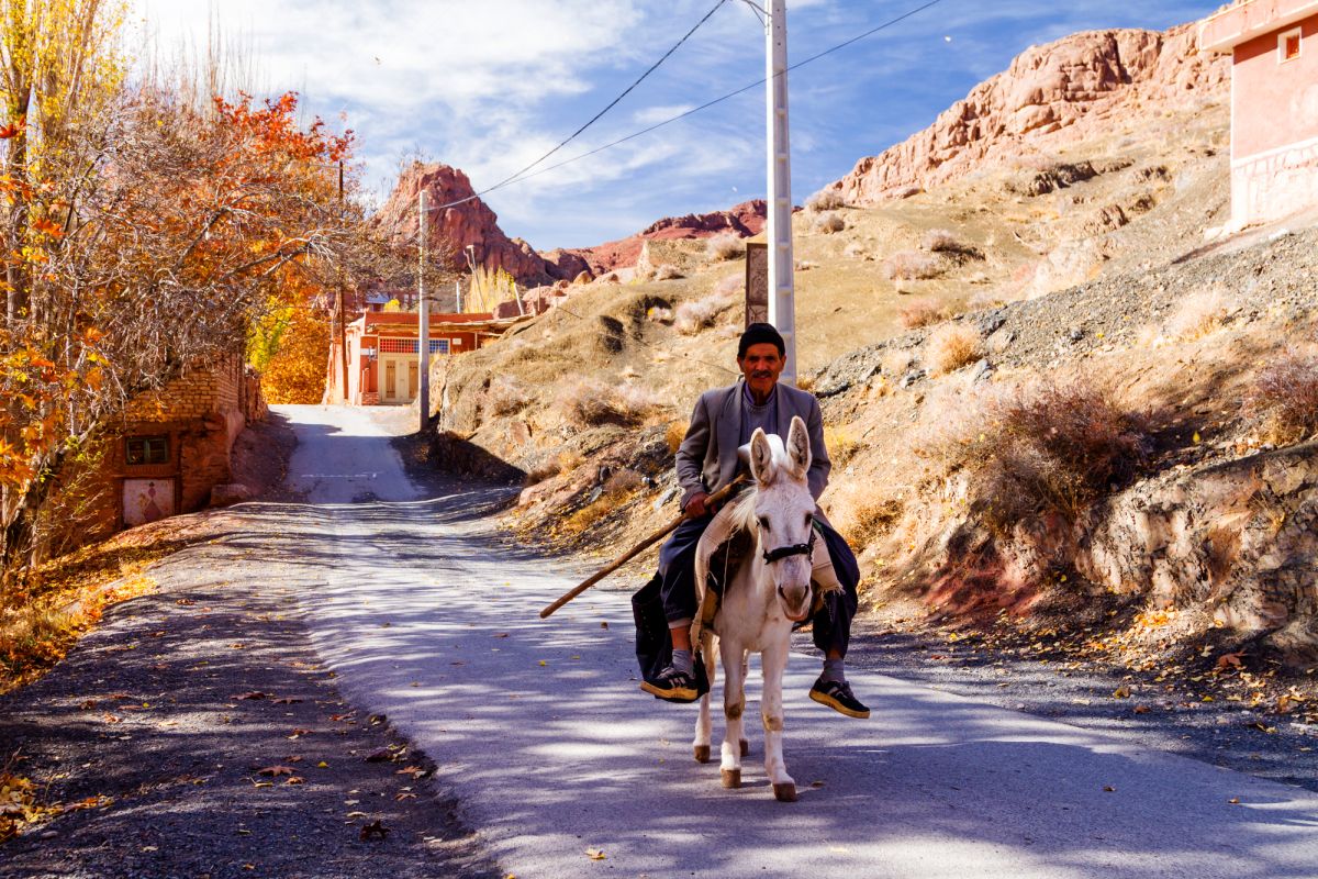 Деревня Абяне - одна из самых специфических деревень Ирана с живописным видом и прекрасным климатом, где все дома были построены на склоне холма на севере реки Барзруд с красивой и приятной архитектурой. По форме деревенские дома - лимасовые, глинобитные, кирпичные и каменные, относящиеся к эпохам Сасанидов, Сельджуков, Сефевидов и Каджаров, и в этой деревне нет ни одного тупикового переулка. Старые дома села построены на склоне холма с покрытием из красной земли, которое хорошо защищает от дождя.