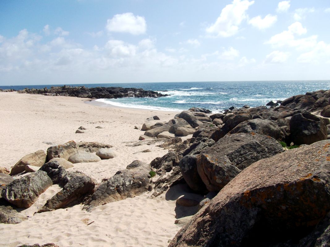 На большом пространстве пляжа «Прайя-ди-Санто-Андре/Прайя-душ-Кабуш» камни разбросаны не как-нибудь, то там, то тут, а как-то упорядоченно, образуя рисунок, напоминающий веревки или канаты (кабуш) - отсюда и второе название пляжа.