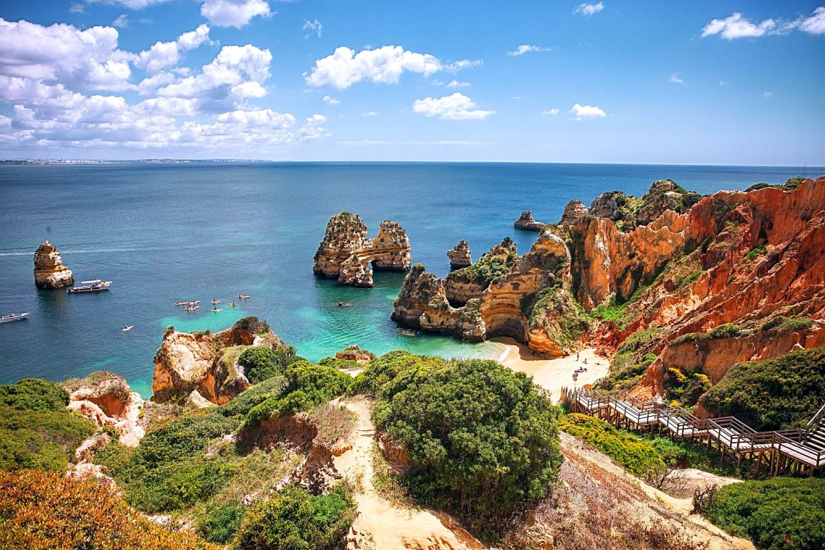 К маленькому пляжу «Прайя-ду-Камилу» у крутого скалистого берега можно спуститься по лестнице, насчитывающей 200 ступеней. Но прежде, чем начать спуск, оглянитесь вокруг и оцените окружающий вас прекрасный пейзаж.