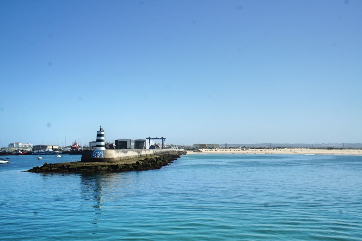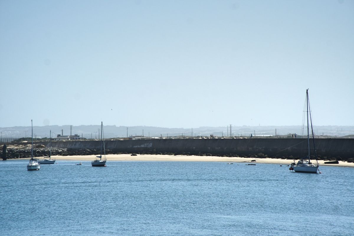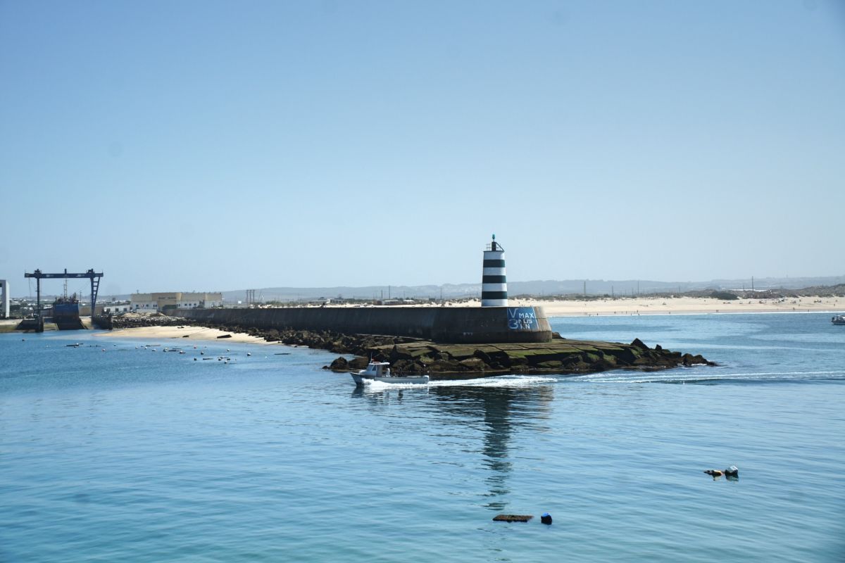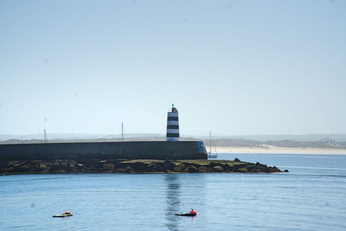 Пляж тянется вдоль насыпной дамбы, которая одновременно защищает берег от волн и создаёт уникальный пейзаж: с одной стороны — тихая бухта, с другой — порт и маяк Molhe Este. Это место идеально подходит для семей с детьми, прогулок у воды, занятий пляжными видами спорта и неспешного отдыха на фоне морского горизонта. Вода здесь чистая, а песок мягкий и золотистый.