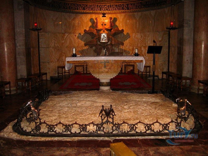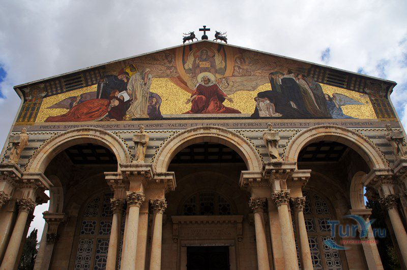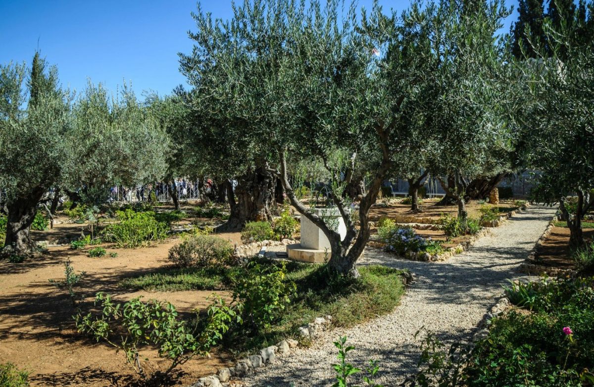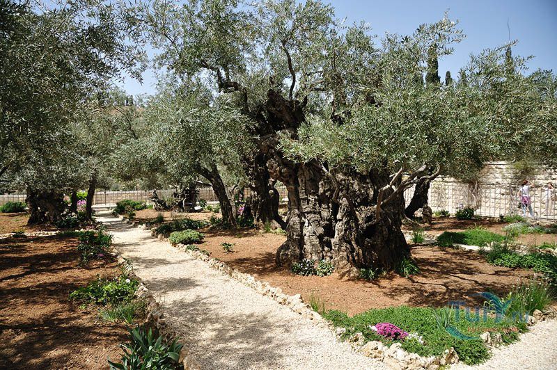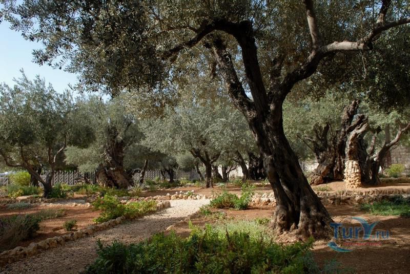 На западном склоне Масличной горы раскинулся Гефсиманский сад. До наших дней сохранилась лишь часть сада библейских времен, однако до сих пор цветут восемь олив, посаженных еще в I веке н.э. Сюда пришел Иисус в ночь перед распятием, здесь он пережил горечь предательства и был арестован. В месте, где, по преданиям, Иуда предал Христа, еще в V веке была построена базилика. В 1919-1924 гг. была сооружена современная церковь Всех наций. Внутри церкви на потолке 12 куполов и гербы 12 стран, пожертвовавших деньги на её строительство. На стенах мозаикой выложены картины, отражающие «Гефсиманское моление», «Предание Спасителя» и «Взятие Христа под стражу». На полу перед алтарем – терновый венец, опоясывающий скалу, на которой молился Иисус. Синие витражи создают внутри церкви полумрак, что символизирует последнюю земную ночь Иисуса.