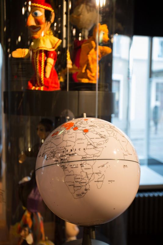 Экспозиция музея кукол NUKU начинается в зале материальных культур, который знакомит посетителей с тем, что в кукольном театре куклой считается любой объект, который можно оживить.