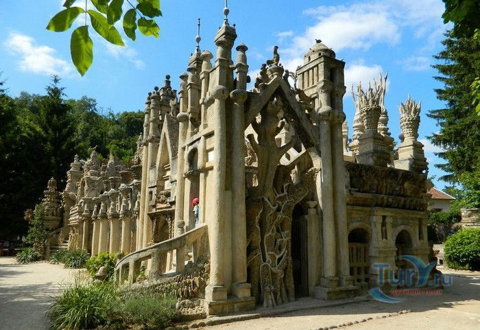 Идеальный дворец почтальона Шеваля - воплощение мечты обычного французского почтальона Фердинанда Шеваля о сказочном замке, который он построил из камней необычной формы, собранных на дорогах и околицах. Сбор камней и строительство длилось 33 года - с 1879 по 1912 годы. На момент окончания строительства автору исполнилось 76 лет. Дворец, созданный из проволоки, цемента и камней, соединил в себе архитектуру самых разных стилей - индуистских храмов, арабских мечетей, средневековых замков и христианских соборов. Идеальный дворец окружен фонтанами, скульптурами мифических животных и сказочных персонажей, внутри есть мечеть и храм. В 1969 году Идеальный дворец официально признан историческим памятником Франции, а самого Фердинанда Шеваля называют основоположником архитектурного стиля Ар брют. Надпись на фасаде «10000 дней, 93000 часов, 33 года» - своеобразное доказательство, что мечты сбываются, если верить и идти к цели. Туристы со всего мира приезжают посмотреть на чудесный дворец. Ежегодно Идеальный дворец посещают более 100 000 человек.