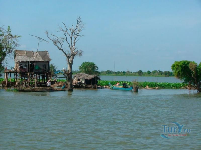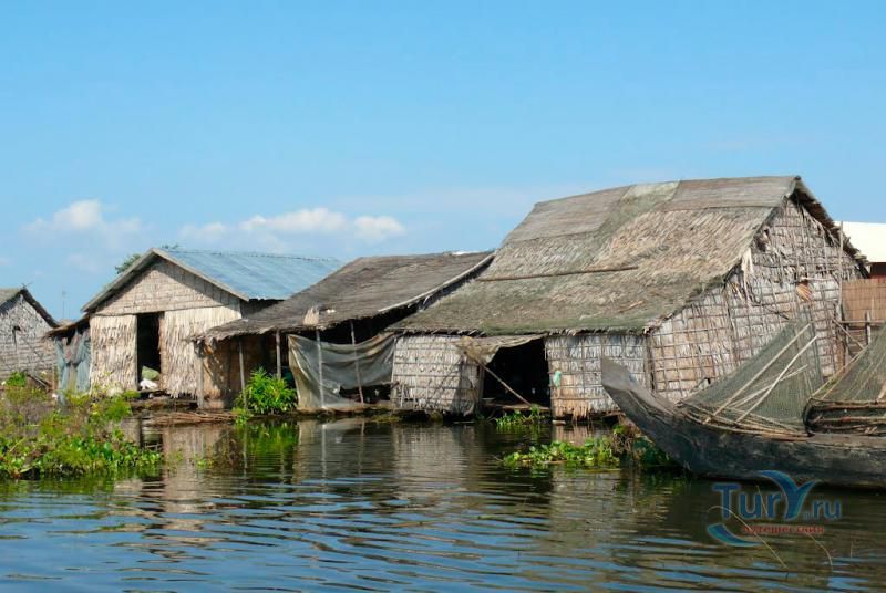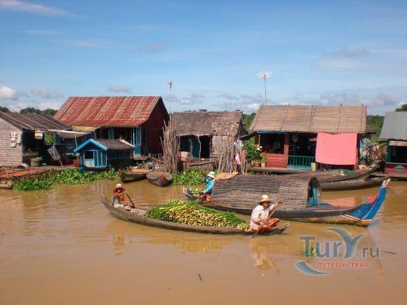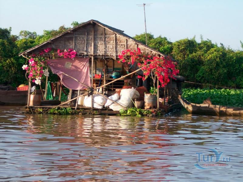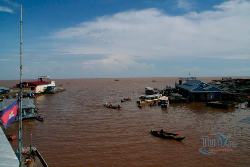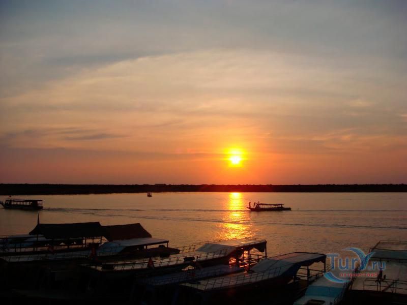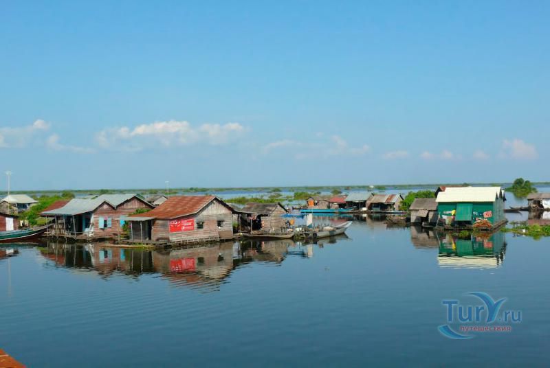 Тонлесап - самый большой водоём Индокитайского полуострова, называемый также «Камбоджийским внутренним морем». Название озера переводится как «большая свежая вода». В западных источниках озеро Тонлесап часто фигурирует как «Большое озеро». Площадь озера 16 тыс. кв. км (для сравнения, площадь Московской области 47 тыс. кв. км). Максимальная глубина озера - 9 метров. Но эти цифры справедливы лишь для сезона дождей, когда озеро наполняется водой и по сравнению с сухим сезоном увеличивается по площади почти в шесть раз. На протяжении большей части года озеро сравнительно невелико (около 2700 кв. км), а глубина озера в это время редко где превышает 1 метр. Таким изменчивым характером озеро обязано вытекающей из него одноименной реке, которая в сезон дождей меняет направление течения и поворачивает вспять, наполняя его водой и затопляя окрестные поля и леса. Благодаря этому создаются хорошие условия для рыбы и для рыбной ловли. Озеро Тонлесап - один из наиболее продуктивных пресноводных ресурсов для добычи рыбы в мире. Кроме того, благодаря тому, что после схода воды на окрестных землях оседает плодородный ил и благодаря постоянно меняющемуся уровню воды, люди могут выращивать рис на плодородной после снижения уровня воды почве в сухой сезон, добывать моллюсков и ловить рыбу круглый год. На озере есть единственное каменное здание, которое стоит на высоких сваях — это буддийский храм. Все же остальные строения плавучие и мигрируют в течение года по озеру. Местные жители, по сути, всю свою жизнь проводят на воде. Чтобы поспевать за периодически передвигающейся береговой линией, они решили не переносить постоянно свои дома, а просто строить их на воде. «Фундаменты» домов в плавучих деревнях представляют собой скопление лодок, плотов и связанных между собой бочек. На них расположены не только жилища, но и небольшие участки земли, где местные жители умудряются выращивать овощи, содержать домашних животных и разводить крокодилов. На таких же плотах построены магазины, школы, храмы, полицейский участок, деревенский клуб, ресторан для туристов и небольшая смотровая площадка. Дети ходят в плавучую школу, путь до которой преодолевают, плавая в больших тазиках. Местные жители не требуют от жизни многого. Их дома от паводка в дождливый сезон защищены благодаря сваям. Отличной вентиляции воздуха в помещении помогает отсутствие дверей. И им совершенно не важно, что в доме нет телевизора, кондиционера и компьютера. Несмотря на такие ужасные условия жизни, жители плавучих деревень неизменно приветливы. Они довольствуются тем, что дает озеро, и не разделяют мужскую и женскую деятельность. Все одинаково добывают пропитание для семьи. Независимо от вида работы, будь то сбор урожая на рисовых плантациях, ловля рыбы, плетение сетей или изготовление сувениров – все трудятся не покладая рук, не обращая никакого внимания на туристов. И пусть вода в озере коричневая от ила и непригодна для питья, зато долины усеяны восхитительными полянами розовых лотосов.