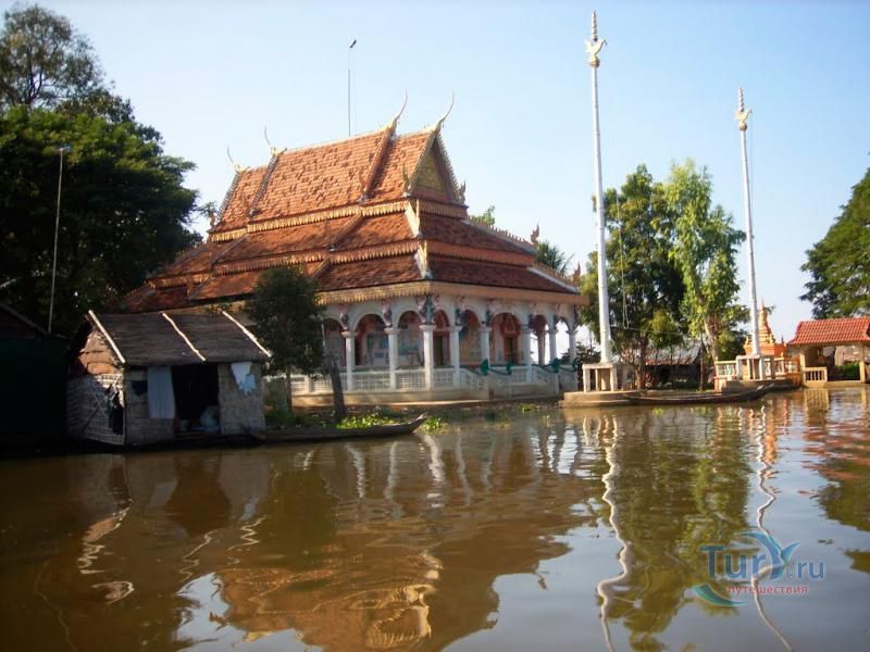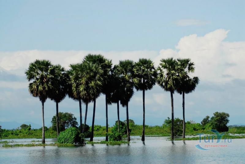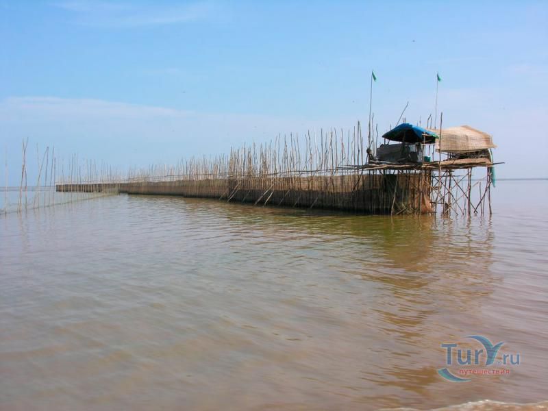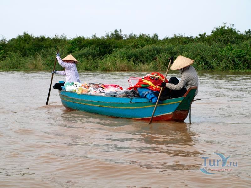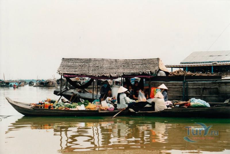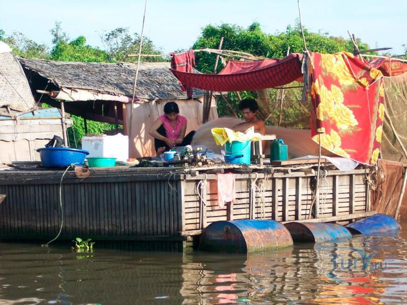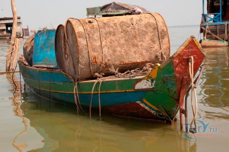 Тонлесап - самый большой водоём Индокитайского полуострова, называемый также «Камбоджийским внутренним морем». Название озера переводится как «большая свежая вода». В западных источниках озеро Тонлесап часто фигурирует как «Большое озеро». Площадь озера 16 тыс. кв. км (для сравнения, площадь Московской области 47 тыс. кв. км). Максимальная глубина озера - 9 метров. Но эти цифры справедливы лишь для сезона дождей, когда озеро наполняется водой и по сравнению с сухим сезоном увеличивается по площади почти в шесть раз. На протяжении большей части года озеро сравнительно невелико (около 2700 кв. км), а глубина озера в это время редко где превышает 1 метр. Таким изменчивым характером озеро обязано вытекающей из него одноименной реке, которая в сезон дождей меняет направление течения и поворачивает вспять, наполняя его водой и затопляя окрестные поля и леса. Благодаря этому создаются хорошие условия для рыбы и для рыбной ловли. Озеро Тонлесап - один из наиболее продуктивных пресноводных ресурсов для добычи рыбы в мире. Кроме того, благодаря тому, что после схода воды на окрестных землях оседает плодородный ил и благодаря постоянно меняющемуся уровню воды, люди могут выращивать рис на плодородной после снижения уровня воды почве в сухой сезон, добывать моллюсков и ловить рыбу круглый год. На озере есть единственное каменное здание, которое стоит на высоких сваях — это буддийский храм. Все же остальные строения плавучие и мигрируют в течение года по озеру. Местные жители, по сути, всю свою жизнь проводят на воде. Чтобы поспевать за периодически передвигающейся береговой линией, они решили не переносить постоянно свои дома, а просто строить их на воде. «Фундаменты» домов в плавучих деревнях представляют собой скопление лодок, плотов и связанных между собой бочек. На них расположены не только жилища, но и небольшие участки земли, где местные жители умудряются выращивать овощи, содержать домашних животных и разводить крокодилов. На таких же плотах построены магазины, школы, храмы, полицейский участок, деревенский клуб, ресторан для туристов и небольшая смотровая площадка. Дети ходят в плавучую школу, путь до которой преодолевают, плавая в больших тазиках. Местные жители не требуют от жизни многого. Их дома от паводка в дождливый сезон защищены благодаря сваям. Отличной вентиляции воздуха в помещении помогает отсутствие дверей. И им совершенно не важно, что в доме нет телевизора, кондиционера и компьютера. Несмотря на такие ужасные условия жизни, жители плавучих деревень неизменно приветливы. Они довольствуются тем, что дает озеро, и не разделяют мужскую и женскую деятельность. Все одинаково добывают пропитание для семьи. Независимо от вида работы, будь то сбор урожая на рисовых плантациях, ловля рыбы, плетение сетей или изготовление сувениров – все трудятся не покладая рук, не обращая никакого внимания на туристов. И пусть вода в озере коричневая от ила и непригодна для питья, зато долины усеяны восхитительными полянами розовых лотосов.