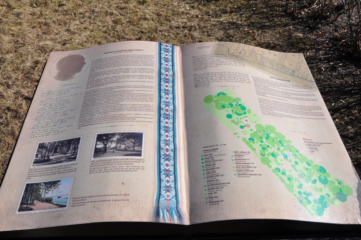Монумент, посвящённый д-ру Фр.Р.Крейцвальду находится на берегу озера Тамула в парке. Автором памятника является скульптор Амандус Адамсон. Литьё из бронзы производилось в Италии. Монумент был открыт в 1926 г. Дата основания парка неизвестна, но по преобладающим видам деревьев - берёзам и липам - его возраст оценивают в более, чем сто лет. Из хвойных деревьев здесь встречаются ели и пихты. Озеро Тамула - расположенный в направлении восток-запад водоём овальной формы, его средняя глубина составляет 4,2 метра. Самая глубокая часть озера - от центра в сторону северо-востока (7,5 м), общая его площадь занимает 231 га. На берегу, прилегающем к городу, находится пляж для купания и живописный променад.