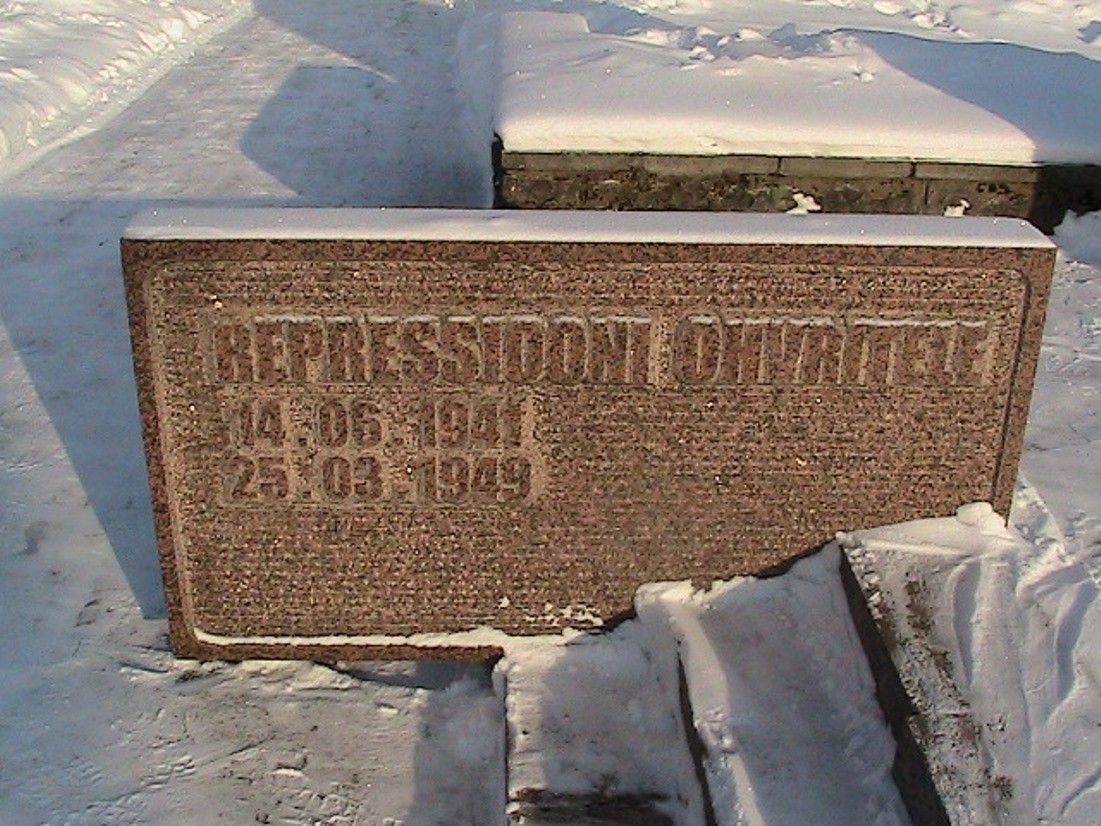 Установлен в память о жертвах сталинского режима. Открыт в 1992 г., архитектор Е.Келлер. Монумент находится перед зданием железнодорожного вокзала, откуда в 1941 г. в товарных вагонах были депортированы в Сибирь тысячи эстонцев.