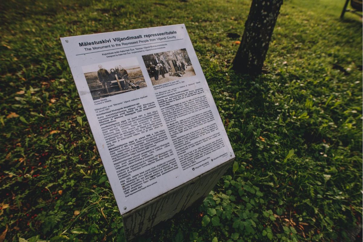 Памятник репрессированным советской властью находится в вильяндиском Парке музыкальных инструментов, между церковью Святого Иоанна и главным зданием мызы Вильянди.