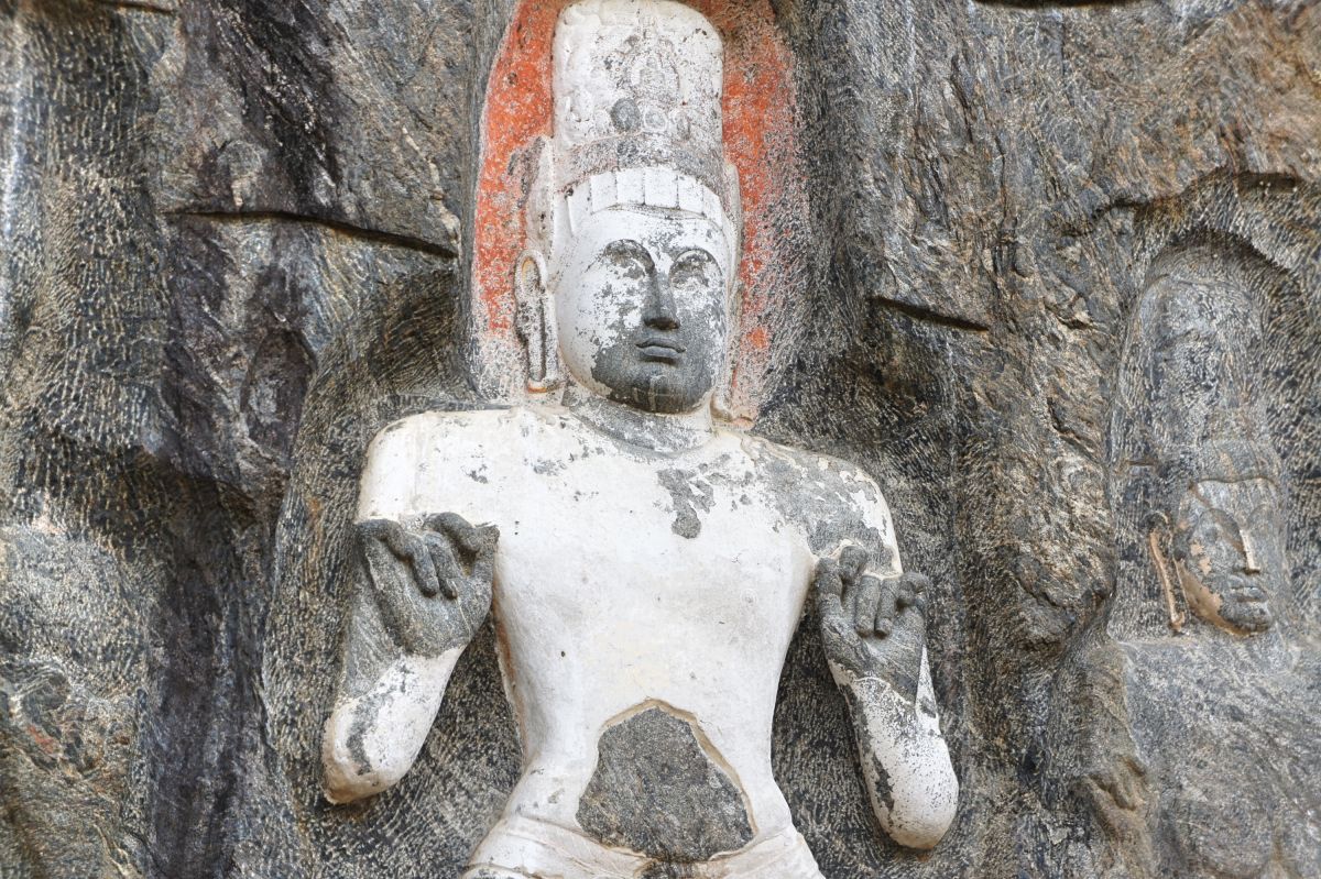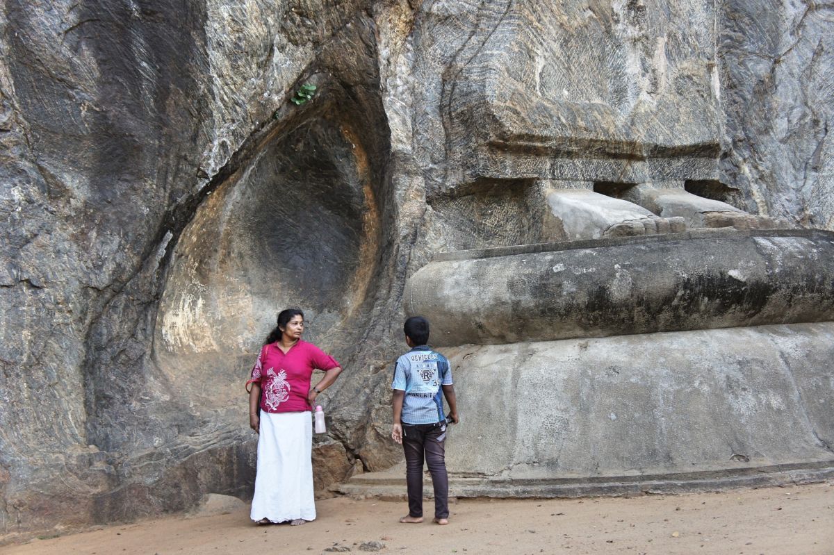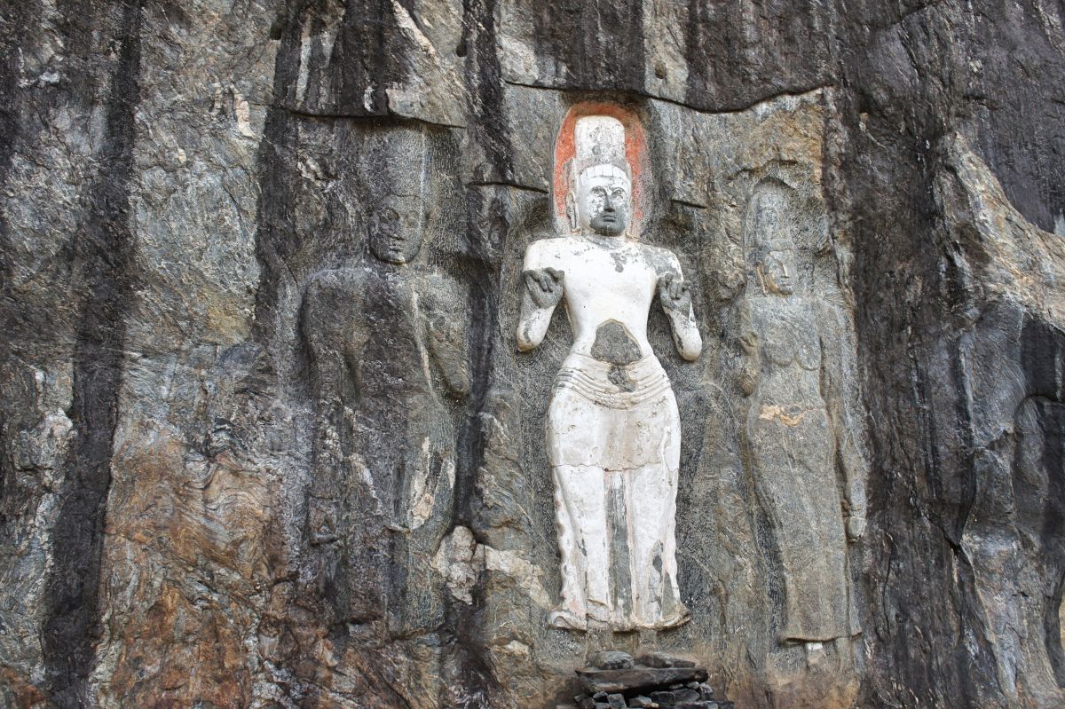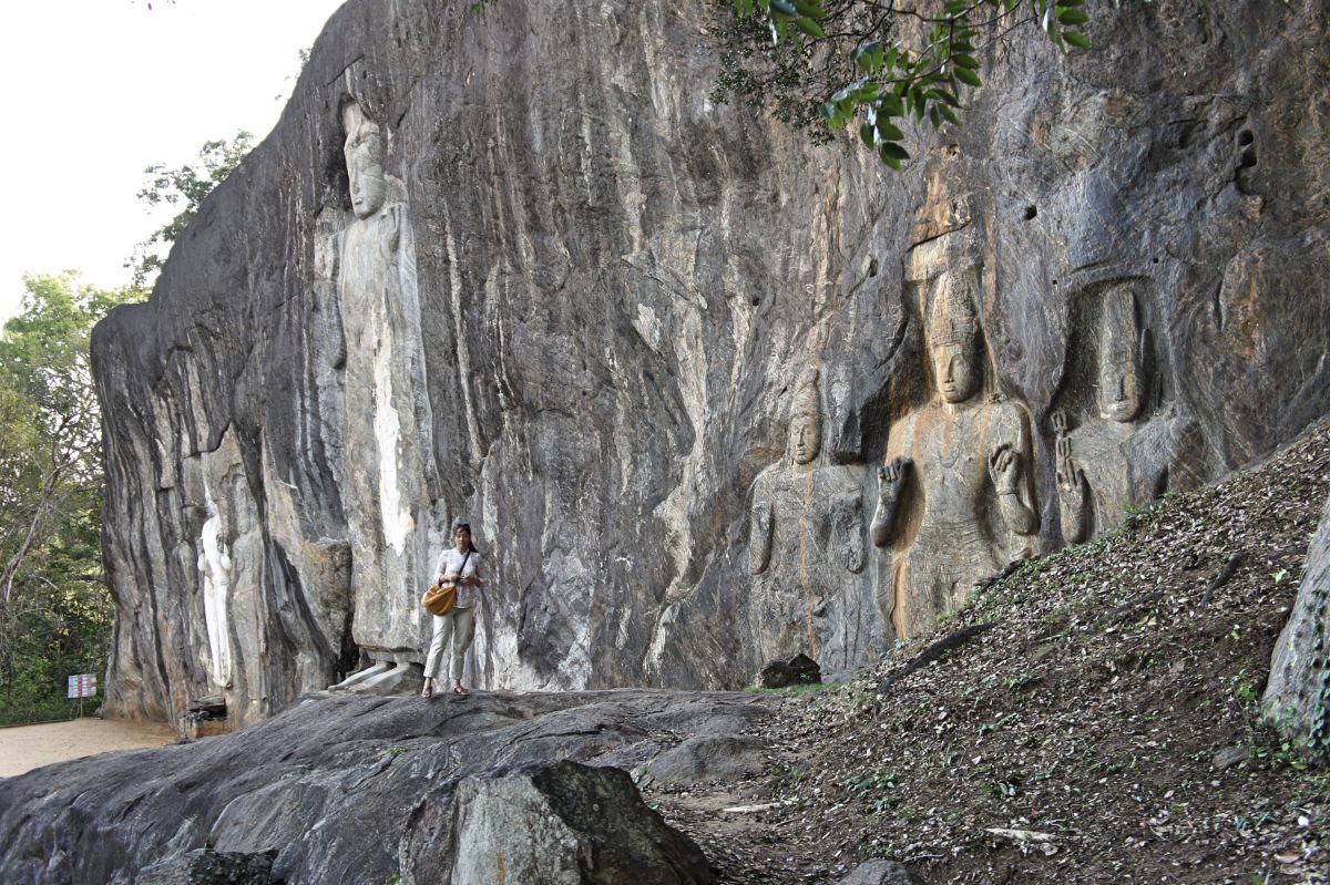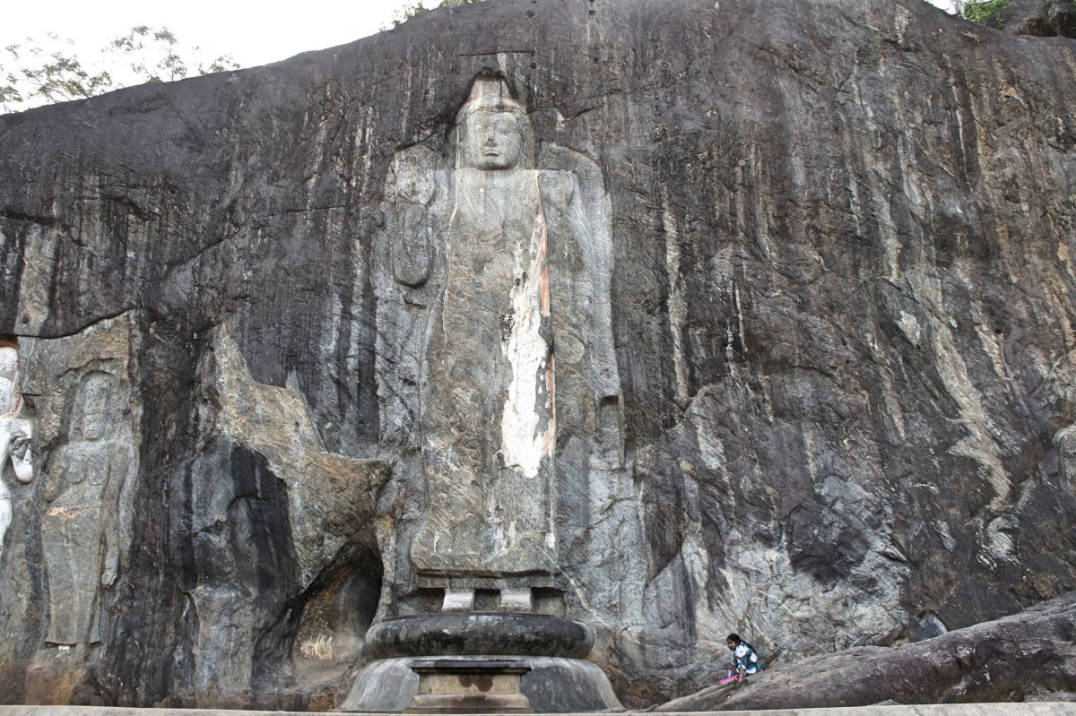 Будурувагала - древний буддийский храм на Шри-Ланке. Комплекс состоит из семи статуй и принадлежит школе Махаяны. Статуи датируются 10 веком. Гигантская статуя Будды до сих пор несет следы своего первоначального оштукатуренного халата, а длинная оранжевая полоса говорит о том, что когда-то она была ярко окрашена. Центром трех фигур справа от Будды считается буддийская мифологическая фигура - Бодхисаттва Авалокитешвара. Слева от этой окрашенной в белый цвет фигуры изображена женская фигура, которая считается его супругой.