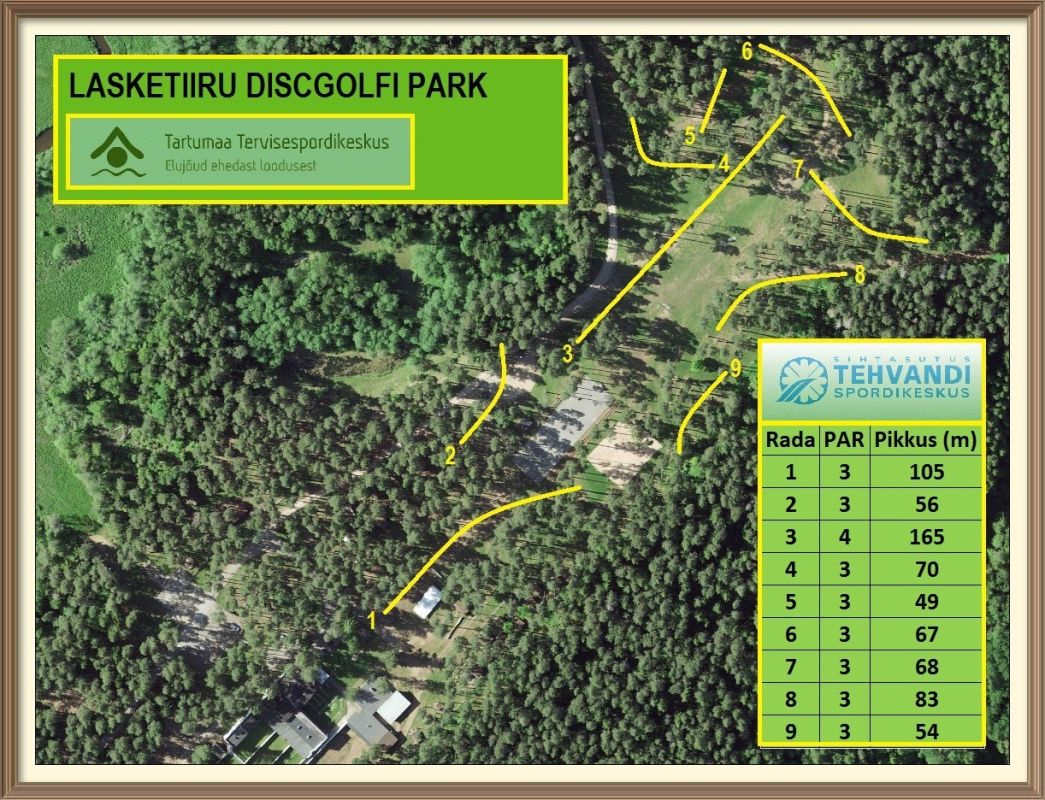 Парк для диск-гольфа с 9 корзинами в Оздоровительном центре Тартуского уезда, наполовину состоящий из построенной в 2010 году тропы; вторая половина была закончена летом 2018 года. Парк подходит как для начинающих, так и продвинутых игроков, поскольку включает в себя короткие и более сложные тропы. Тропы проходят по красивому лесопарку, а для более интересной игры добавлены обязательные для прохождения пункты и места с подъемами и спусками. Общая длина троп – 717 метров, начало и конец тропы находятся неподалеку от главного здания.