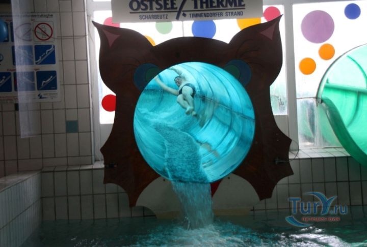 Аквапарк и SPA–центр Ostsee Therme расположен на берегу Балтийского моря между Шарбойцем и Тиммендорфским пляжем, на территории в 14 000 квадратных метров. Все виды водных развлечений, какие только может придумать взрослый или ребенок здесь есть. Вас ожидают бассейны, пещеры с водопадами, искусственные горные реки, несколько термальных ванн и массажных бассейнов, водные пушки, дайвинг-центр, сауна, солярии, массажные кабинеты, открытая площадка и специальные кабинки для купания на берегу моря – здесь предусмотрено все, чтобы обеспечить максимальное удовольствие и комфорт всем посетителям от младенцев до пожилых людей.