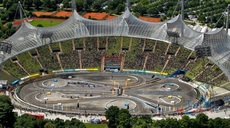 Мюнхен очень серьезно готовился к летним олимпийским играм 1972 года. Было развернуто широкомасштабное строительство как спортивных, так и развлекательных объектов. Одним из них стал Олимпийский парк – огромный спортивный комплекс на севере города, включающий в себя олимпийскую башню, стадион, открытую арену, пресс-центр, а также площадки для различных видов спорта. Олимпийский стадион был главной ареной ХХ летних Олимпийских игр. Сегодня Олимпийский парк, Олимпийская башня и Олимпийский стадион являются одними из самых узнаваемых символов города. Спроектированный Гюнтером Бенишем и Фраем Отто, стадион считался революционным для своего времени. При строительстве были использованы большие навесы из акрилового стекла и стальные тросы. Широкий и прозрачный купол должен был символизировать новую, демократическую и оптимистичную Германию. Строительство стадиона общей вместимостью 70 000 мест началось в 1968 году. После Олимпийских игр и вплоть до 2005 года стадион использовался футбольными клубами «Бавария» и «Мюнхен 1860» для проведения своих домашних игр. В 1974 на Олимпийском стадионе проходили матчи Лиги Чемпионов, включая финальную встречу соревнований. В 1988 году здесь проходил финальный матч чемпионата Европы между футбольными командами Нидерландов и СССР. Олимпийский стадион трижды принимал финалы самого престижного клубного футбольного турнира Европы – в 1979, 1993 и 1997 годах.
