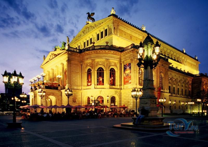 Старая Опера – архитектурная жемчужина Фанкфурта-на-Майне, построенная в конце девятнадцатого века по проекту Рихарда Луке. На её открытие в 1880 году из Берлина специально приезжал кайзер Вильгельм I. Здание в стиле неоренессанса с двойным фронтоном, множеством статуй по всему фасаду и девизом: «Истинному, прекрасному, доброму», было практически полностью разрушено во время Второй мировой войны. В таком виде Старая Опера и простояла почти пол века, получив неофициальное название «самые прекрасные руины Германии». Однако, в конце семидесятых годов прошлого века, под давлением жителей Франкфурта, здание оперы все-таки было восстановлено, и в 1981 году Старая Опера вновь приняла зрителей и стала неотъемлемой частью городской культурной жизни. Фасад и холл здания были воссозданы в своем историческом виде, однако остальные помещения оперы были разработаны с использованием современных архитектурных требований.