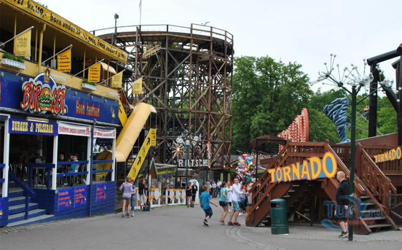 Парк Баккен необходимо посетить хотя бы потому, что это самый старый парк развлечений в мире. Как гласит предание, в 1583 году одна девочка заметила в Королевском оленьем парке на севере от Копенгагена бьющий из-под земли родник. А надо сказать, что в те времена всякому природному источнику воды приписывались целебные магические свойства. Поэтому и потянулись к роднику тысячи страждущих исцелиться - а где много людей, там автоматически возникает соответствующая инфраструктура (выражаясь современным языком). Постепенно вокруг источника строились балаганы, где артисты разыгрывали представления на потеху публике, постоялые дворы, затем появились аттракционы… На сегодняшний день "Баккен" - это более 150 аттракционов и 2.5 миллиона посетителей ежегодно. Изюминкой парка (кроме его старины и почтенности, естественно) можно назвать выступления Пьеро - известнейшего кукольного персонажа, а также представления в единственном в мире Датском кабаре. Оказывается, раньше Мьюзик-холлы были широко распространены на территории страны. Однако до сегодняшнего дня дожил только баккенский вариант - ему уже 176 лет!