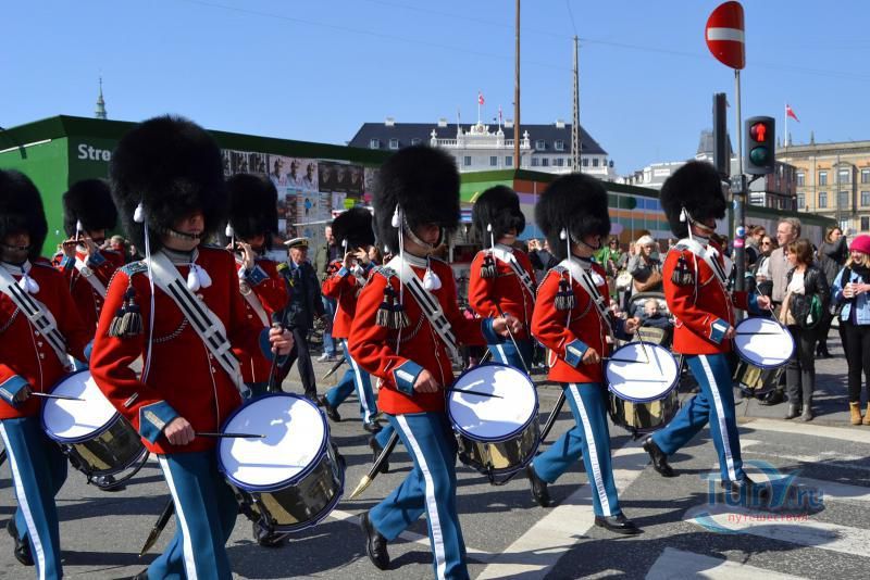Ежедневно в полдень на площади Амалиенборга проходит марш королевских гвардейцев и торжественная смена караула. Обычно солдаты одеты в темно-синюю форму, но если вам повезет оказаться в Амалиенборге 16 апреля – в день рождения нынешней королевы Маргрете, – вы увидите парадное обмундирование гвардейцев: ярко-голубые брюки, красные жакеты и высокие медвежьи шапки.