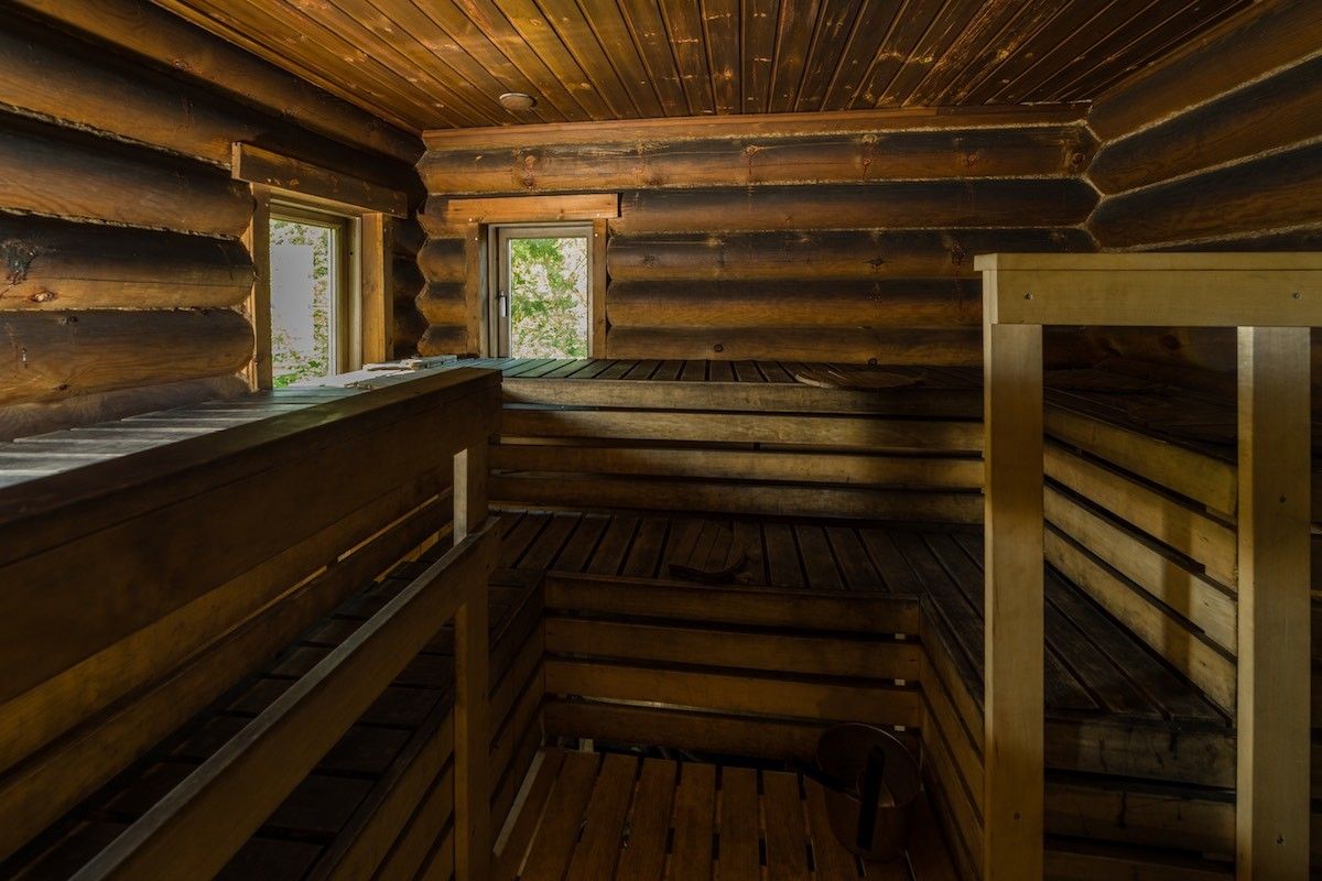 В банных домиках есть банная печь русского типа, обогреваемая бочка для купания, зал для отдыха, открытая терраса, уличный гриль, на мансардном этаже есть спальные места для 16 человек.