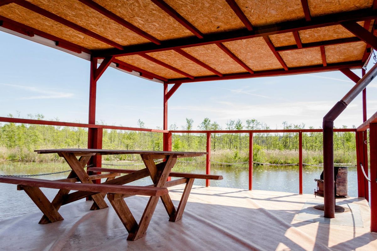 Расположенная на озере Эрмисту приватная двухэтажная баня на плоту предлагает банные впечатления для компаний до 10 человек. На первом этаже находится вместительная парилка с дровяным отоплением, лестница для спуска и уголок для сидения, на втором этаже можно устроить барбекю, всем вместе посидеть за столом и насладиться видом на озеро.