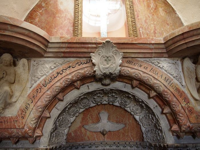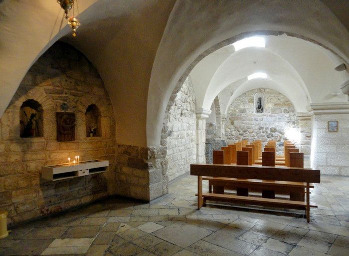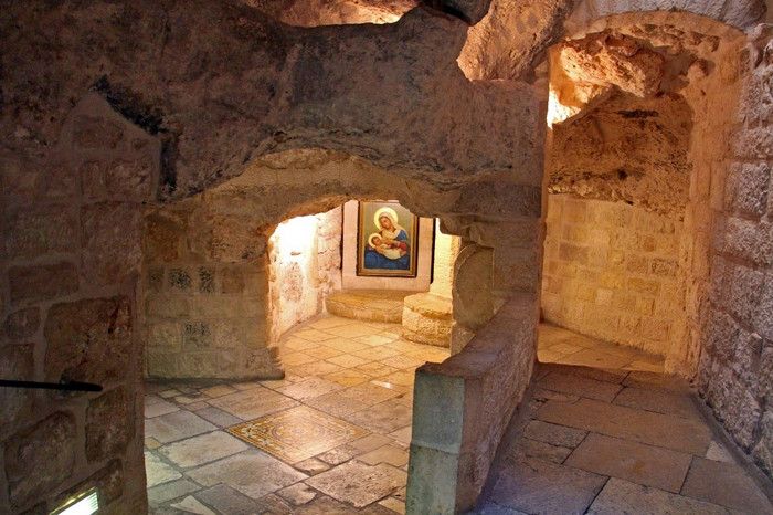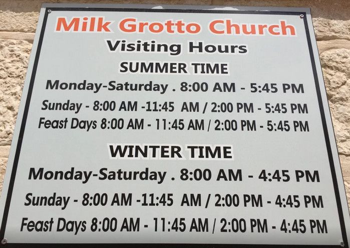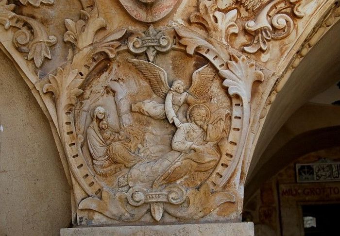 Молочный Грот (Церковь Лактации) - одна из самых почитаемых христианских и мусульманских святынь, расположен в Вифлееме, рядом с Базиликой Рождества Христова. По преданию, в этом гроте во время Избиения младенцев (до бегства в Египет) скрывалось Святое Семейство, спасаясь от воинов царя Ирода, поверившего в предсказание о приходе Мессии и приказавшего уничтожить всех младенцев в Вифлееме. Согласно легенде, когда Дева Мария кормила грудью младенца Иисуса, несколько капель молока попали на стены пещеры, выложенные из камня красноватого оттенка, и окрасили их в белый цвет. С тех пор пещеру называют Молочным гротом, а порошок из белого камня (капель молока Богородицы) со стен пещеры стали считать чудодейственным. Издавна женщины Вифлеема использовали отколотые от стен пещеры кусочки белого камня и порошок из него для лечения различных заболеваний. Считается, что порошок излечивает женское бесплодие и помогает молодым матерям при нехватке грудного молока. Уже в V веке над пещерой, ставшей местом паломничества со времён раннего христианства, была возведена небольшая часовня, от которой до наших дней сохранились фундамент и фрагменты красочного мозаичного пола. В 1375 году подлинность и святость пещеры была подтверждена буллой Папы Римского Григория XI, а земля, на которой расположен Молочный Грот, передана в управление ордену Францисканцев. В 1871 году на фундаменте византийского храма монахами-францисканцами была построена католическая часовня Молочного Грота, известная также как Церковь Лактации. Из часовни в грот ведёт лестница, состоящая из 13 ступеней, вход в пещеру украшен декоративной лепниной и скульптурным изображением белого голубя - символа Святого Духа. В пещере, в том месте, где Дева Мария кормила грудью младенца Иисуса, установлена чудотворная икона с изображением Божьей Матери и младенца Христа. В гроте размещены скульптурные изображения сцен из Писания и жизни Святого Семейства. Стены церкви Лактации выложены из белого камня и украшены резьбой, выполненной искусными Вифлеемскими умельцами. Центральное место в церкви занимает статуя Девы Марии с Младенцем, в нишах стен расположены небольшие скульптуры Святого Георгия Победоносца, пророка Ильи и царя Давида. Перед входом в Молочный Грот есть небольшое помещение, стены которого сплошь увешаны фотографиями младенцев и благодарственными надписями счастливых родителей, молитвы которых были услышаны Богородицей.