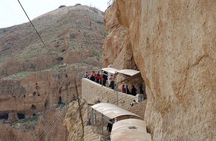 Монастырь Искушения (Монастырь Каранталь) - православный греческий мужской монастырь, расположенный в Иудейской пустыне, на северо-западной окраине города Иерихон. Монастырь построен на горе Искушения (по-арабски - Джабал аль-Каранталь), на которой, согласно Евангелию, сатана искушал Иисуса Христа во время его 40-дневного поста в Иудейской пустыне, куда он удалился после принятия крещения в водах реки Иордан. Монахи и отшельники стали селиться в пещерах на священной горе со времён возникновения христианства, в 326 году нашей эры гору Искушения посетила Святая Елена, мать императора Константина, а в 340 году на горе Каранталь Харитоном Исповедником была основана лавра Дука. Обитель была разрушена в 614 году во время нашествия персов и окончательно заброшена после захвата Святой земли халифом Умаром ибн Хаттабом в 630 году. В 1099 году эти земли были завоёваны крестоносцами, которые построили на горе две церкви - одну в пещере, где жил во время своего 40-дневного поста Иисус Христос, вторую - на вершине горы Искушения. В 1874 году земля, на которой расположен нынешний монастырь Каранталь, была приобретена Православной Греческой Церковью, а сам монастырь был полностью восстановлен в 1895 году. С этого момента с новой силой возобновилось паломничество на гору Искушения, в самый его пик священная гора представляла собой "подобие большого улья, в котором любители безмолвия не переставали с опасностью собственной жизни вырабатывать духовный мед, упражняясь в священном трезвении и непрестанной молитве". И сейчас рядом с монастырём можно увидеть множество пещер-келий, в которых жили коптские монахи-отшельники. Сам же монастырь словно приклеен к горе - все его внутренние помещения вырублены в скале, а в пещере Иисуса Христа устроена небольшая церковь - часовня Искушения. В ней хранится главная реликвия обители - камень, сидя на котором, по преданию, молился Иисус Христос. Над этим камнем расположен престол часовни. Сохранилась в монастыре и пещера праведного Харитона Исповедника, основателя обители, пещера очень маленькая, а своды её настолько низкие, что войти в помещение можно только низко склонив голову. Большая часть монашеских келий в настоящее время пустует, сегодня в монастыре постоянно живут всего один монах-насельник и его помощник. Традиционный (паломнический) путь к монастырю проходит по крутому горному серпантину, в 1998 году из Иерихона до горы Искушения была построена канатная дорога, по которой можно легко добраться до монастыря Каранталь.