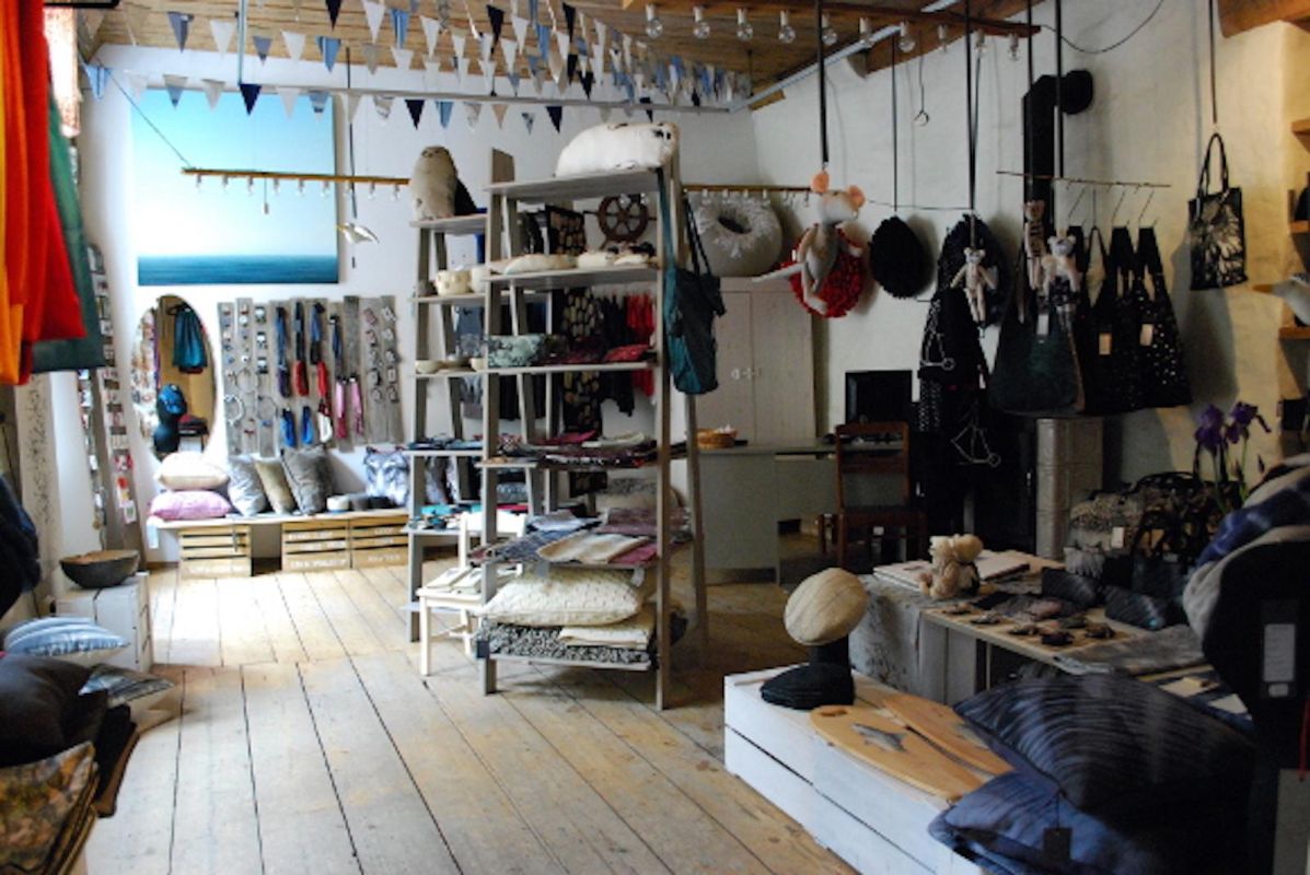 Художники сами тоже находятся в магазине. В ассортименте, в основном, изготовленные в магазине Эммы ткани, а также игрушки, украшения ручной работы, шарфы, тканые на ручных станках, и шарфы-хомуты.