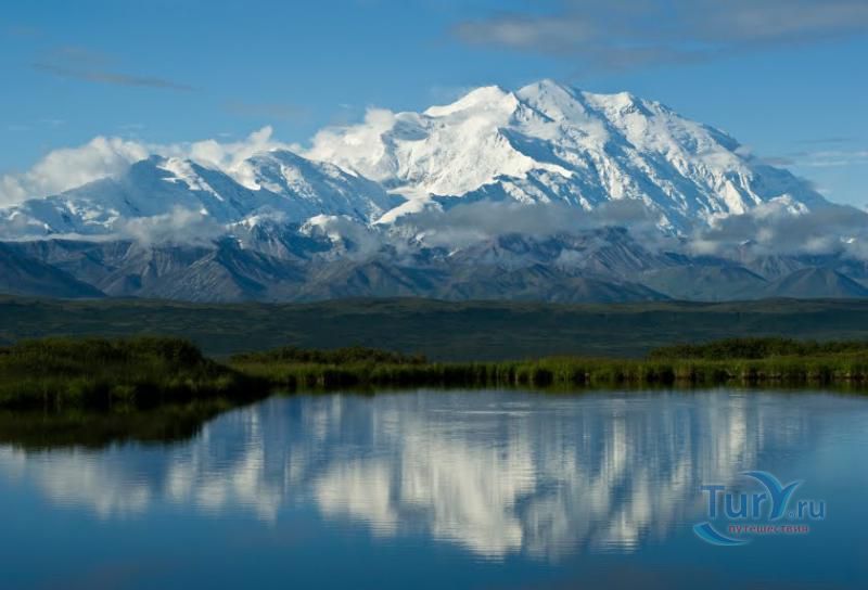 Вершина Мак-Кинли - географический центр как Аляски, так и Аляскинской горной гряды. Первым, кто обозначил эту вершину на карте, был Фердинанд Врангель, русский мореплаватель, полярный исследователь и государственный деятель. Однако после того, как Россия продала Аляску США, Большая гора Русской Аляски стала называться Мак-Кинли. Основанный в 1917 году Национальный парк Маунт-Мак-Кинли и созданный в 1978 году Национальный монумент Денали были объединены под общим именем Национальный парк Денали в 1980 году. Ученые насчитали в парке Денали около 650 видов растений, среди которых не только арктические мхи и лишайники, но и хвойные и листопадные породы деревьев, а также прекрасные цветы, весной и летом радующие глаз многочисленных посетителей парка. Среди 39 видов местных млекопитающих — большие популяции медведя гризли и черного медведя-барибала. Медведи, особенно гризли, чувствуют себя настоящими хозяевами этих мест. Помимо необычайно низких температур зимы, здесь случаются небольшие ежегодные землетрясения, поскольку Аляскинская горная гряда еще растет.