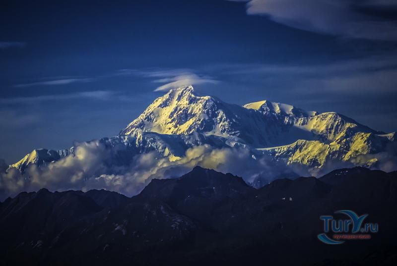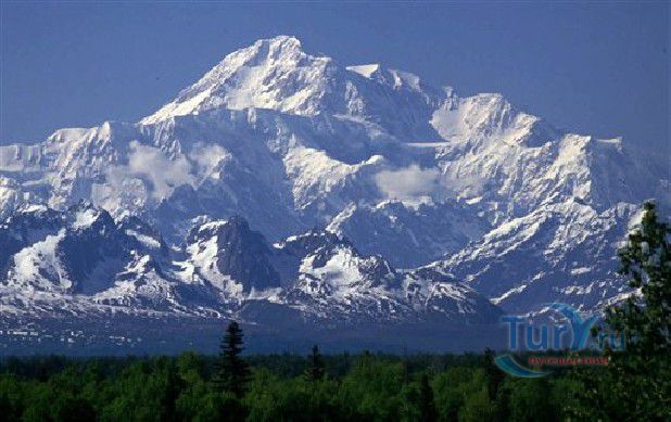 Самая высокая точка Северной Америки находится в центре Аляски, являясь частью Аляскинской горной гряды. Пик Мак-Кинли — двуглавая гора, высотой 6 168 метров, свое название вершина получила в честь 25-го президента Соединённых Штатов Америки Уильяма Мак-Кинли. Коренное население этого региона Аляски - индейцы атабаски - называли этот пик «Денали», что означает «великий», а во время российской колонизации Аляски это пик назывался просто Большая Гора.