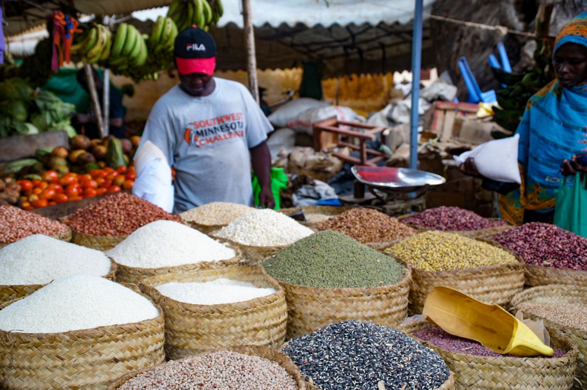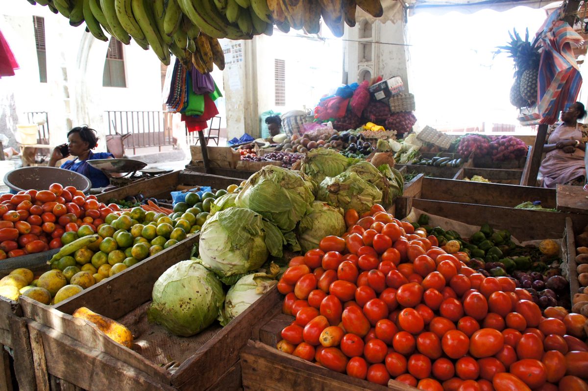 На прилавках можно найти экзотические фрукты, овощи, свежевыловленную рыбу и морепродукты, которые привозят рыбаки прямо с лодок. Важную часть торговли составляют специи — гвоздика, кардамон, корица и мускатный орех, привезенные с соседнего Занзибара и с древних времен являющиеся частью суахильской кухни.