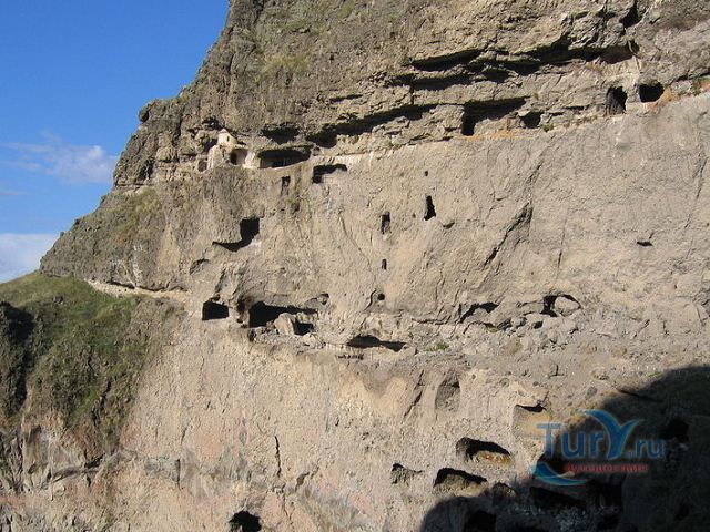Это пещерный монастырь 8 века нашей эры, уже потом, через 400 лет после постройки этого монастыря, была построена крепость Вардзиа. У Ванис Квабеби было около 19 уровней пещер. Тут 3 церквей, 2 построеный и вполне хорошой сохраности, одна из них на уровне земли, а вторая наверху, белая церквушка снеди серых скал. Как ее строили — загадка.Третья же — развалины огромного зала в пещере, видимо он и был главным храмом монастыря.