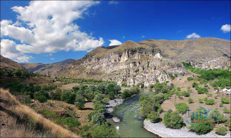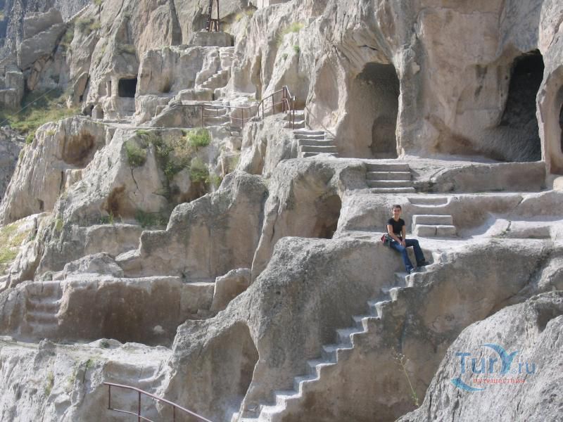 Вардзия находится в 18 км от Ахалкалаки, в непосредственной близости от границы с Турцией. Город был создан в XII - XIII веках во время правления Георгия III и его дочери царицы Тамары для защиты южных рубежей Грузии. Вардзия – это не просто хаотично вырытые в отвесной скале пещерные помещения. Это настоящий многоэтажный (!) комплекс с улицами, тоннелями и лестницами, ведущими мимо монастырей, храмов, крепостей, бань, библиотек, жилых построек и пр. Всего свыше 600 соединенных ходами помещений, которые простирались вдоль горы в длину на 800 метров , в глубину горы до 50 метров и в высоту на восемь этажей.