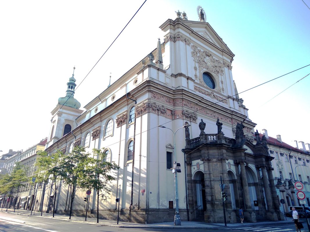 Костёл в стиле раннего барокко первоначально был частью иезуитского колледжа (третьего иезуитского комплекса в Европе), который сегодня служит нуждам факультетской больницы. Доминанта Карловой площади построена в 1665-71 гг. архитектором Карло Лураго. Посетителей впечатлит богатство декора в стиле барокко и потрясающий эффект рассеянного света. Обстановка храма относится к 70-м годам 18-го века.