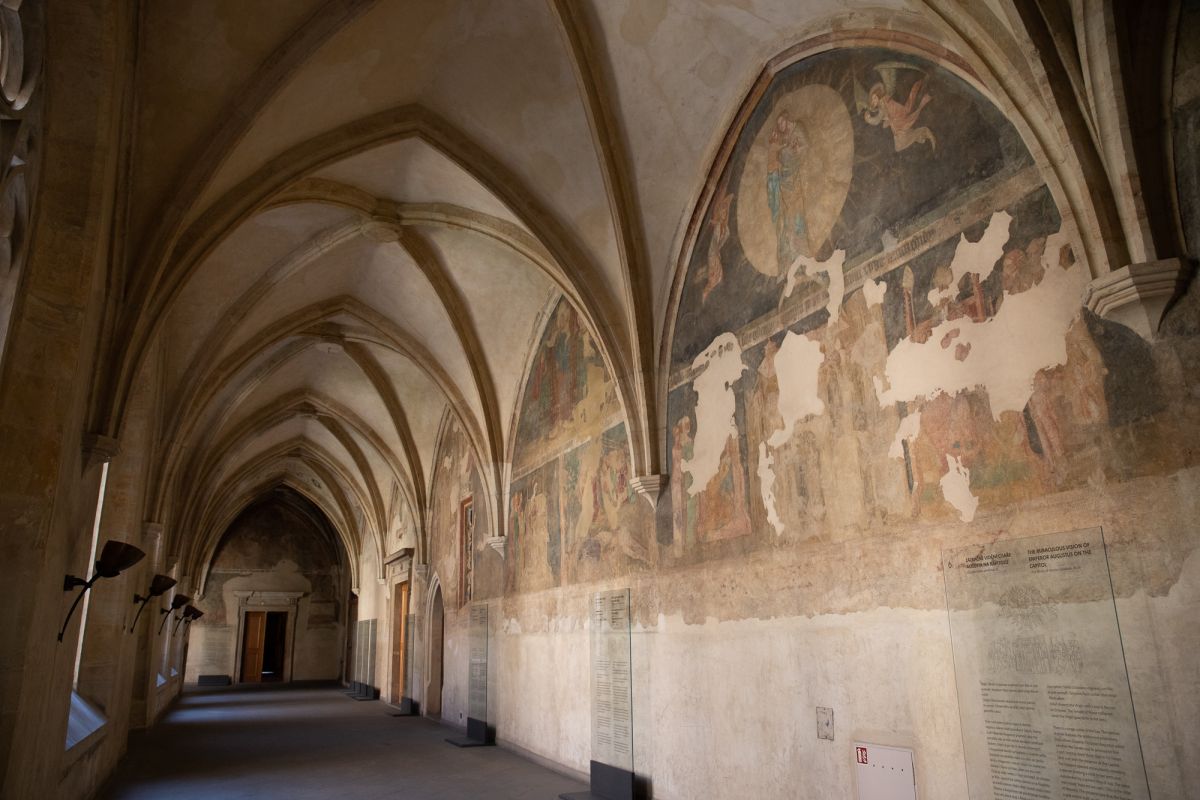 Во время реконструкции в капитульном зале монастыря были обнаружены фрагменты настенных росписей и надписей. Надпись на хорватской глаголице (скорее всего текст старочешских «Десяти заповедей» 1412 г.) является первым и пока единственным свидетельством использования глаголицы у нас и в западноевропейских странах вообще.