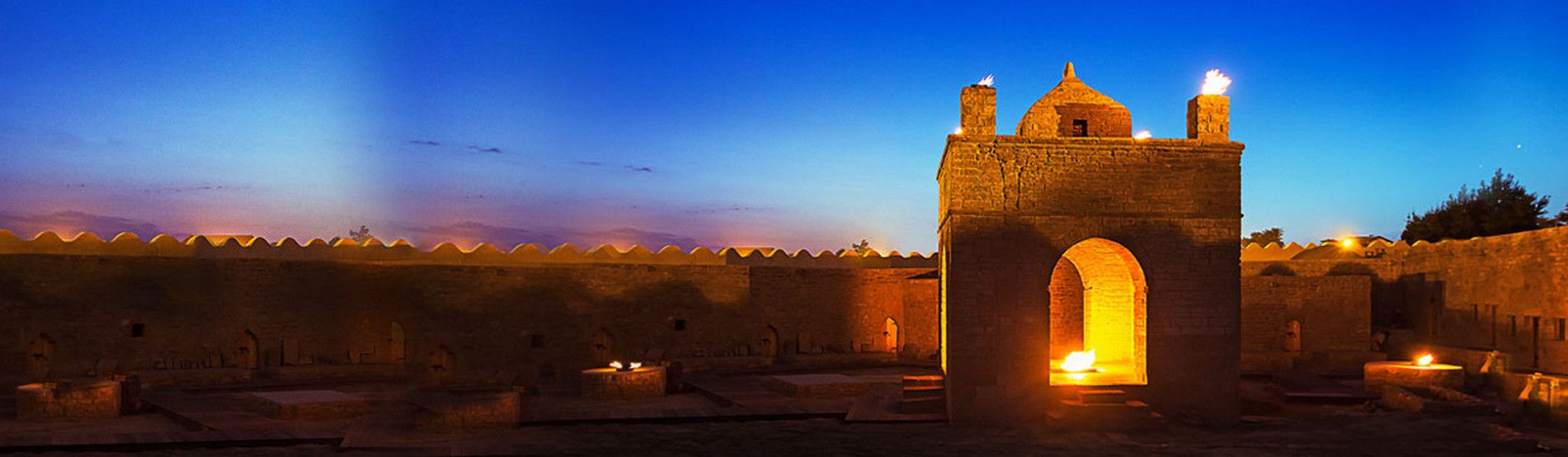 Храм вечного огня Атешгях – самая настоящая азербайджанская экзотика. О нем знают практически во всем мире. Он расположен в 30 км от центра Баку, на окраине селения Сураханы. Эта территория известна таким уникальным природным феноменом, как горящие выходы естественного газа (газ, вырываясь наружу, соприкасается с кислородом и загорается), что дало название храму - Атешгях, что буквально означает "Дом огня", "Место огня".