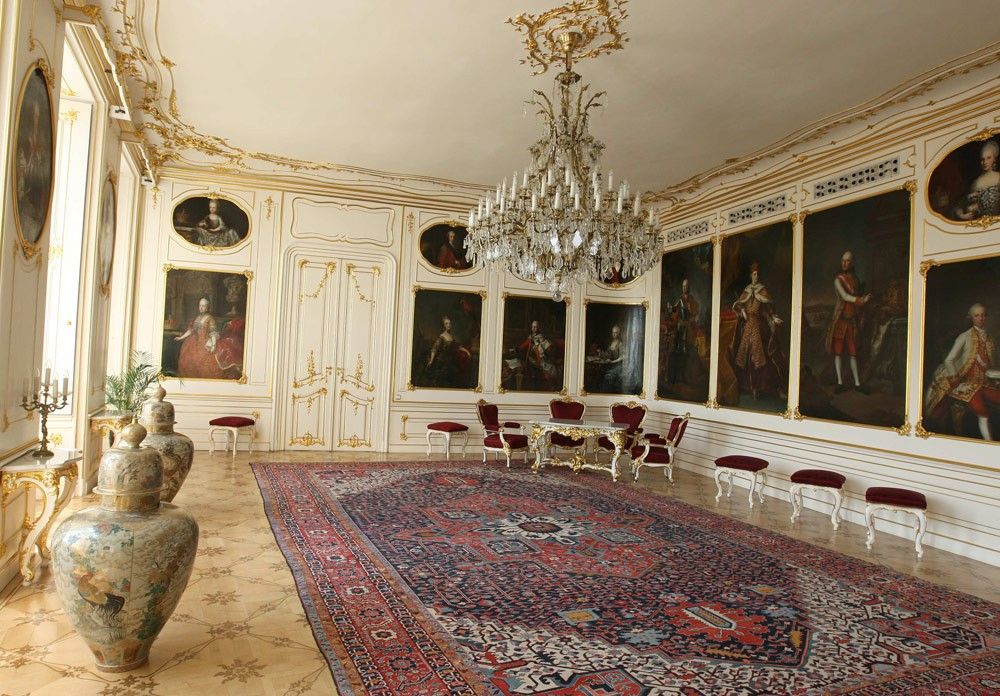 Туристам, посещающим Пражский Град, эти представительские помещения, как правило, не демонстрируются. Салоны, залы, гостиные комнаты, предназначенные для приёма официальных делегаций президентом республики, занимают весь первый этаж так называемого Нового дворца. Некоторые из них служили в качестве репрезентационных залов и жилых помещений для чешских правителей ещё в 16-м веке. Весь комплекс Нового дворца был консолидирован и перестроен во времена Марии-Терезии.