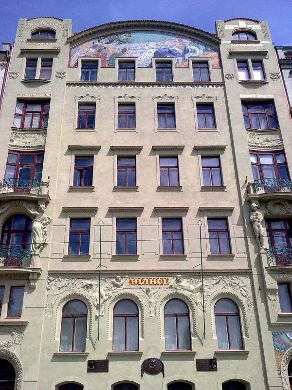 В прекрасном здании в стиле модерн на влтавской набережной находится концертный зал со стеклянным потолком и небольшим органом. В зале помещены бюсты хормейстеров; прекрасным декором является и люнет «Чешская песня» Альфонса Мухи.
