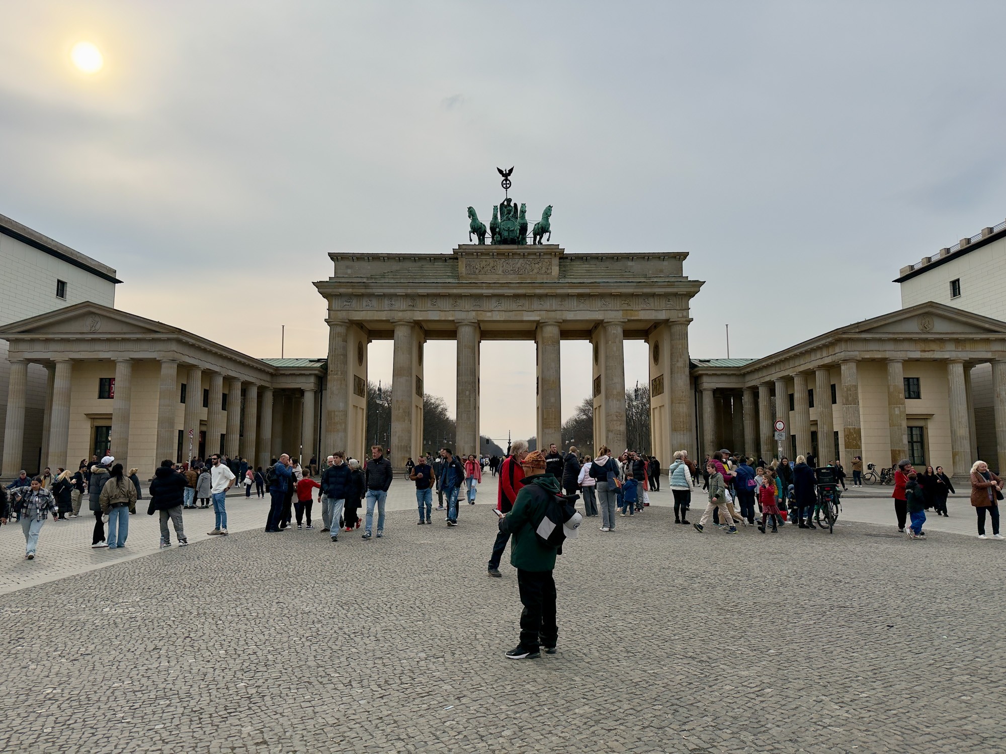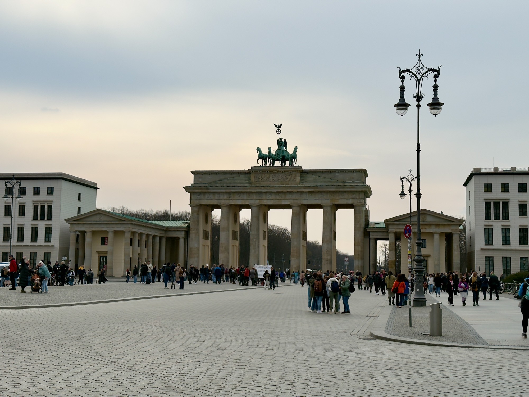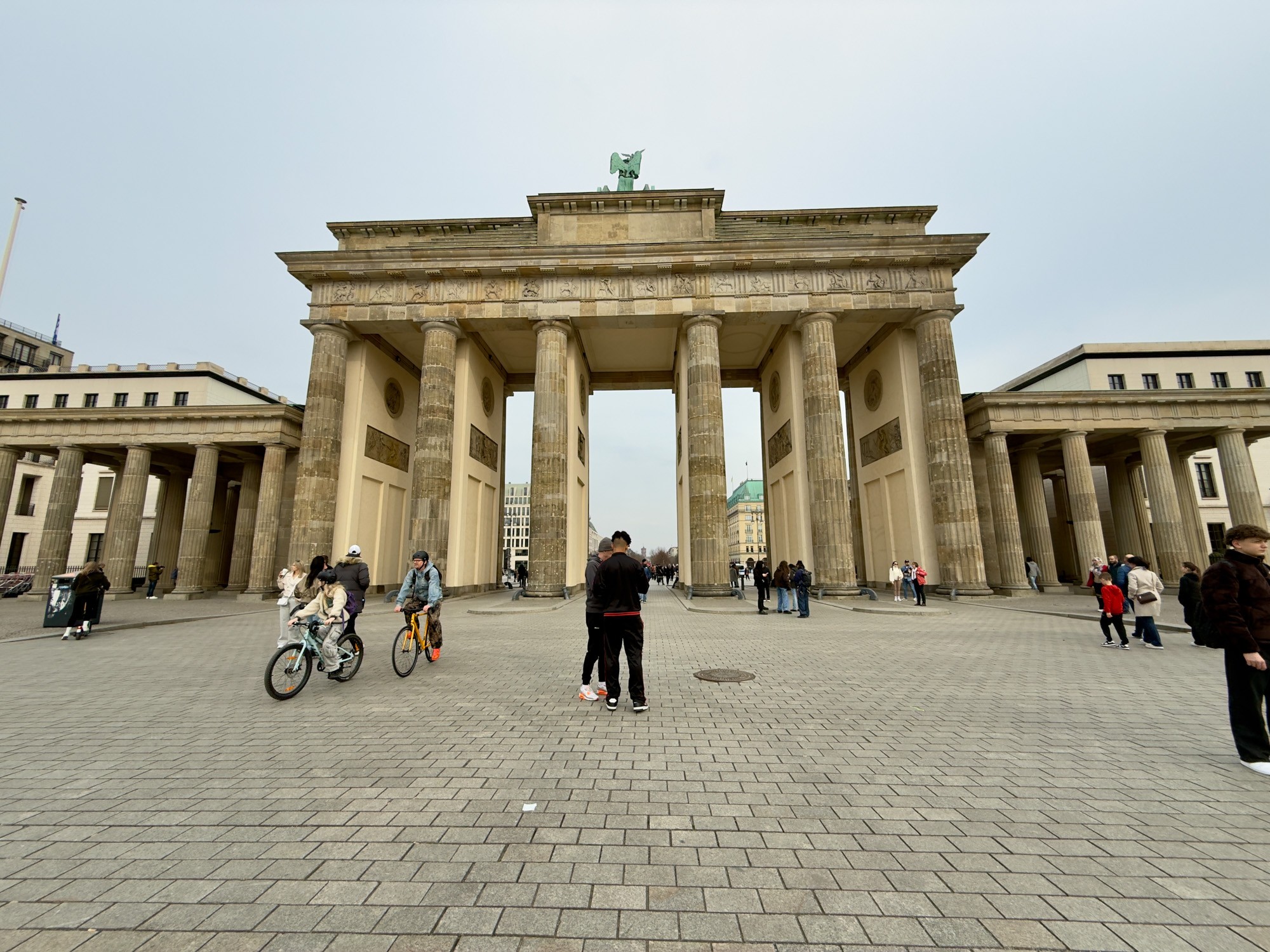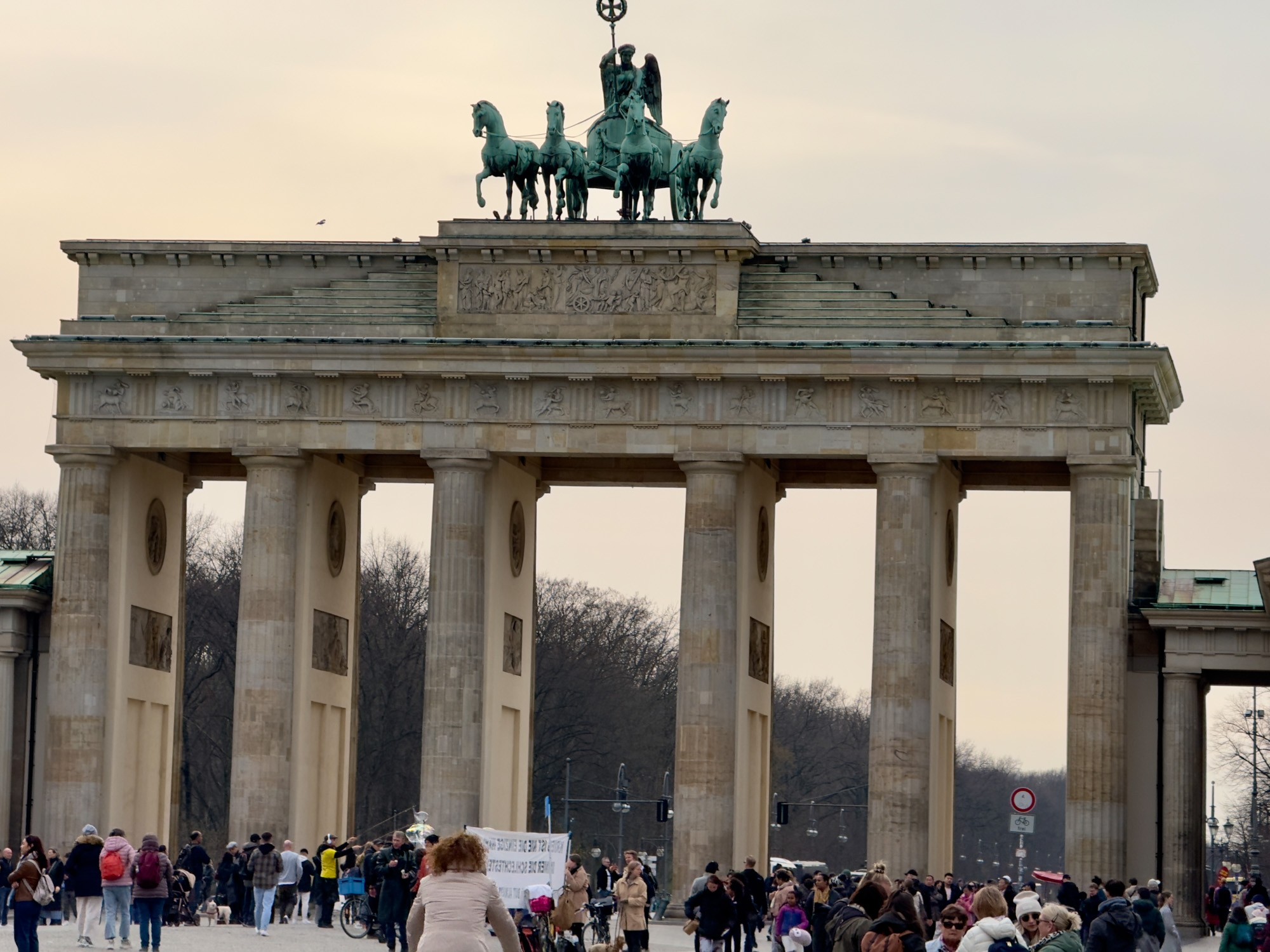Это триумфальная арка, расположенная в самом центре Берлина, один из символов города. Ворота возвышаются на Парижской площади и являются напоминанием о том времени, когда в Берлин можно было въехать через них. Ворота были заказаны Фридрихом Вильгельмом II в знак мира и спроектированы Карлом Готтхардом Лангхансом в 1788 – 1791 гг. Высота Бранденбургских ворот 26 метров, длина – 65.5 метров и толщина 11 метров. Бранденбургские ворота состоят из 12 греческих дорических колонн, по шесть с каждой стороны. На их создание авторов вдохновили древнегреческие Пропилеи - монументальный вход в Парфенон в Афинах. Над воротами возвышается знаменитая и часто фотографируемая Квадрига работы Готфрида Шадова, построенная в 1793 году, на которой изображена статуя богини Мира, правящая колесницей, запряженной четырьмя конями.