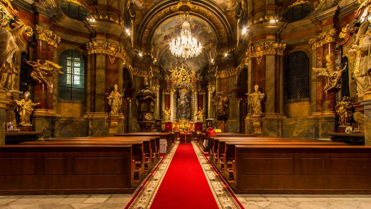 Костел был основан в 1355 г. Карлом IV как часть монастыря августинианок. Нынешний вид храма относится к его реконструкции в 1737-41 гг. в стиле барокко, однако от первоначального строения осталась высокая восьмиугольная башня, прозванная Пражским минаретом. Храм св. Екатерины Александрийской находится в ареале Всеобщей факультетской больницы, а управляет им Православная церковь.