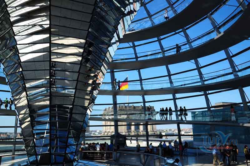 Ночь 17-го февраля 1933-го года навсегда позорным пятном останется в истории Германии. В эту ночь в здании парламента разразился пожар. Было очевидно, что пожар был устроен нацистами по приказу Гитлера, однако вина легла на немецкую коммунистическую партию. Отрядам Гитлера этого предлога было достаточно, чтобы начать массовые аресты «диссидентов и врагов законного правительства». Из-за этого пожара демократии Германии наступил конец. Рейхстаг, очнувшийся ото сна с падением Берлинской стены и воссоединением Германии в 1990 году, вновь стал зданием парламента. Здание все еще напоминает стиль неоренессанса, в котором оно было открыто в 1894 году. Сегодня оно украшено огромным стеклянным куполом, созданным английским архитектором сэром Норманом Фостером. Вы можете пройти через западные ворота и подняться на лифте до купола, откуда открывается чудесный вид на Берлин. Под куполом также располагается ресторан.